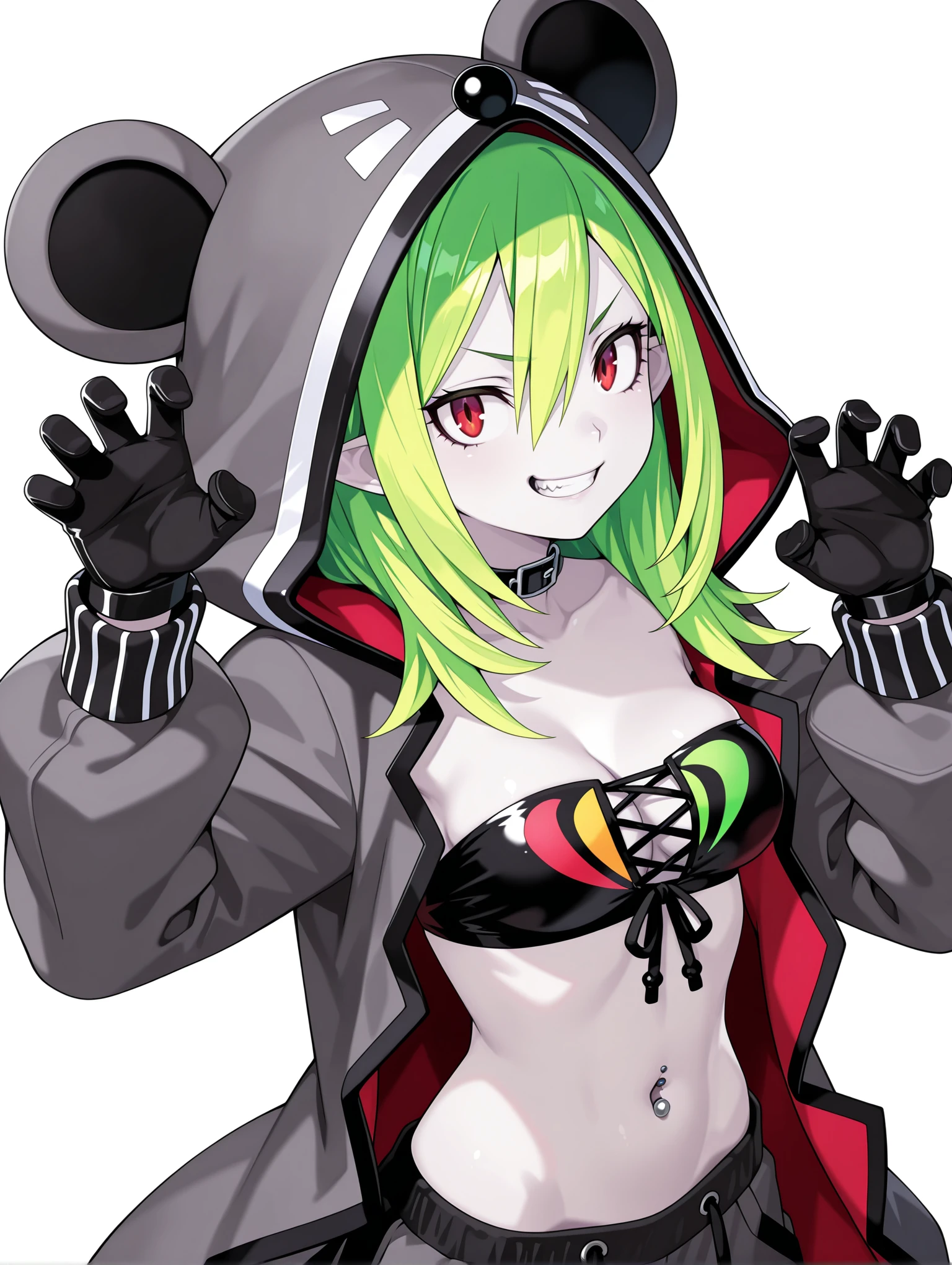 トリガーワード ・linda,green hair,pointy ears,red eyes,pale skin,