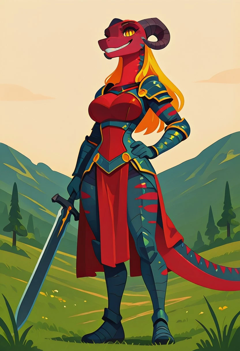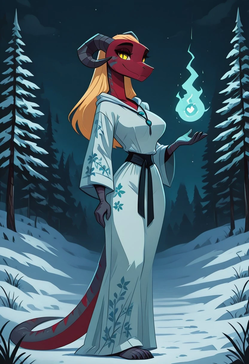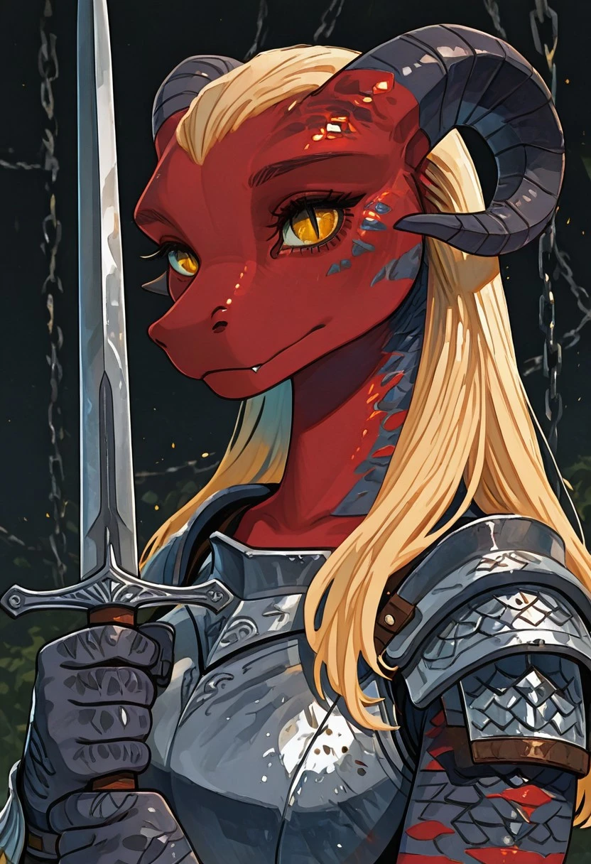 LizAlia_Draako, scalie female, two-tone skin, blonde hair, long hair, large breasts, yellow eyes, large black pupils,