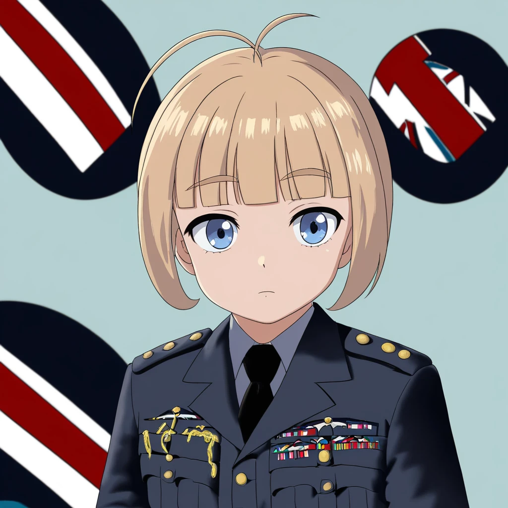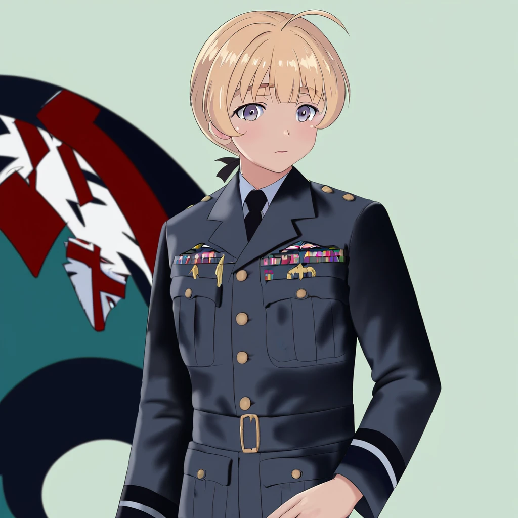 Raf uniform, uniform, military, solo, braid, looking at viewer, military uniform, necktie