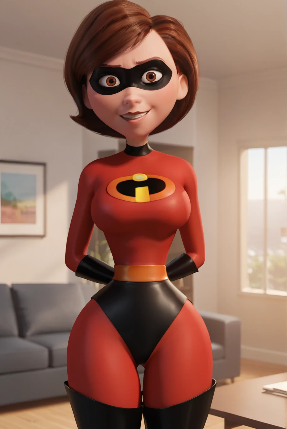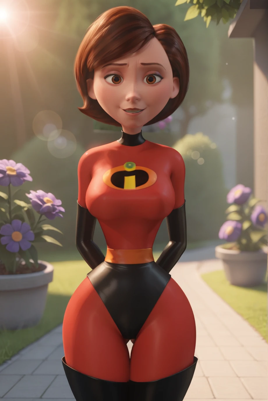 <lora:HelenParrXL-v1-06:0.6>, ChopioHelen, short hair, brown hair, brown eyes, looking at viewer, narrow waist, wide hips,