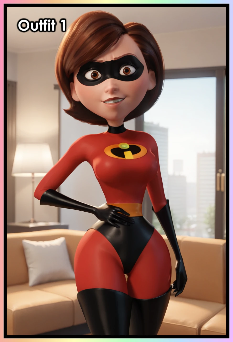 narrow waist, wide hips,Outfit 1 (Superhero Outfit):