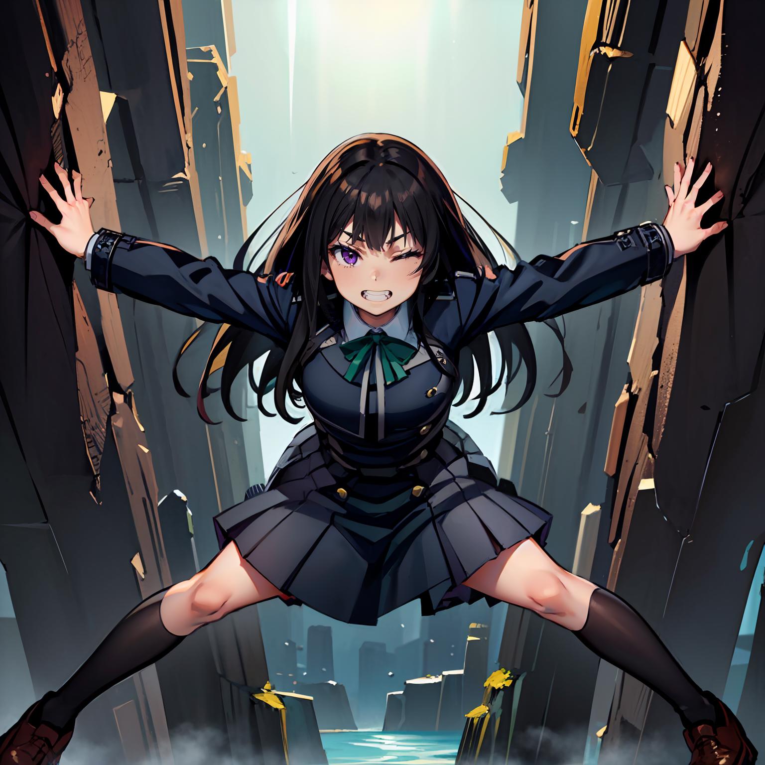 According to ChatGPT, the act of climbing by wedging one's hands and feet into narrow gaps is called "bridging." Therefore, since this climbing method was not possible with Stable Diffusion, this time I've created a scene where a favorite character is climbing with both hands and feet spread apart. It might be a niche, but I believe it would be useful for those who want to depict a character doing rock climbing with their legs wide open.