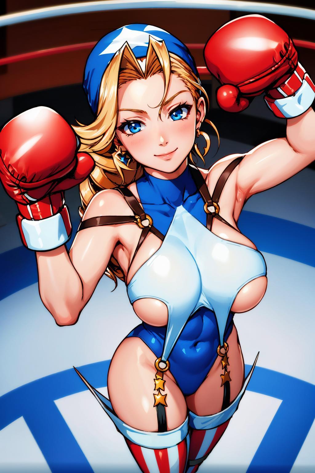 earrings, , cleavage cutout, boxing gloves, thigh boots