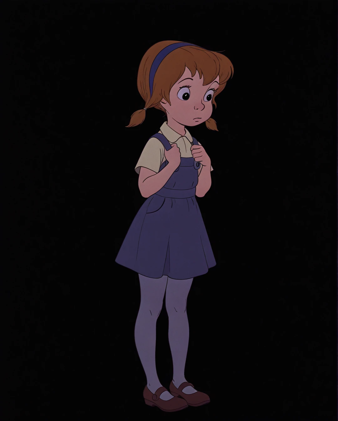 This LoRA is designed to generate faithful depictions of Penny, the brave, kind-hearted, and deeply emotional orphan girl who serves as the deuteragonist and emotional core of Disney’s 1977 animated feature The Rescuers.With an unshakable belief that dreams can come true through hope and faith — even while being held captive by the villainous Madame Medusa and forced to retrieve the world’s largest diamond from a dangerous pirate cave. Her quiet courage, gentle spirit, and tearful vulnerability make her one of Disney’s most poignant protagonists. The model locks her canonical 1977 hand-drawn Disney design: short pigtails, patched blue dress, and wide, expressive eyes.