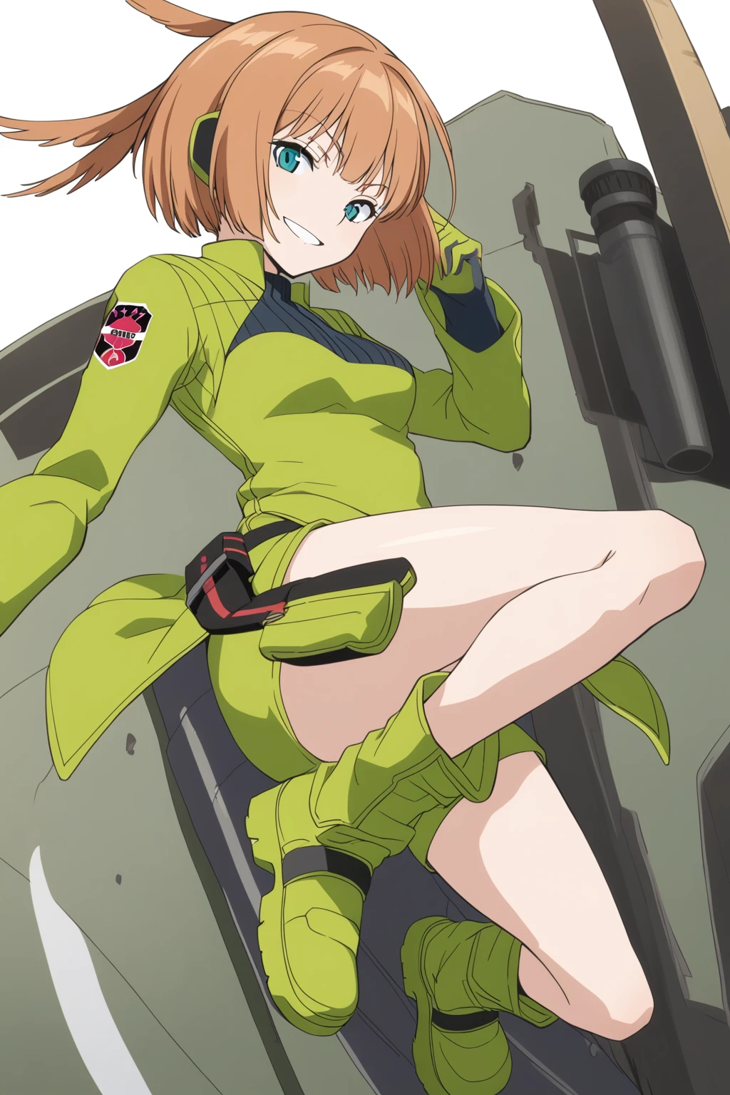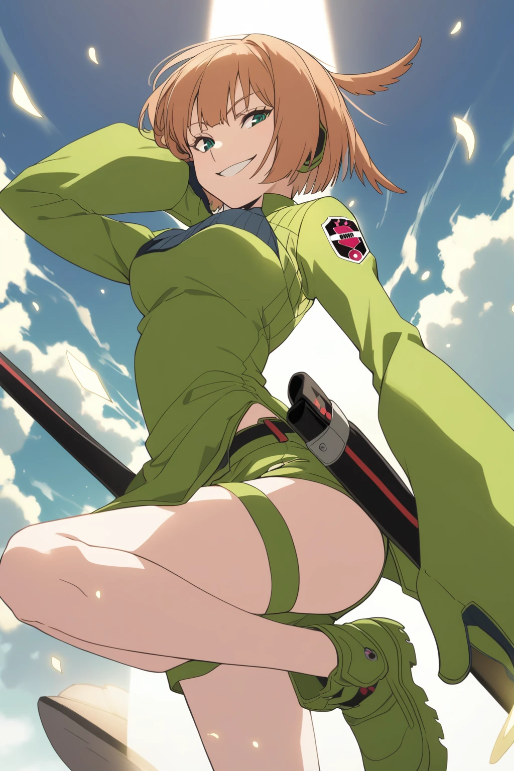 Base Outfit: green jacket, gloves, green shorts, green footwear