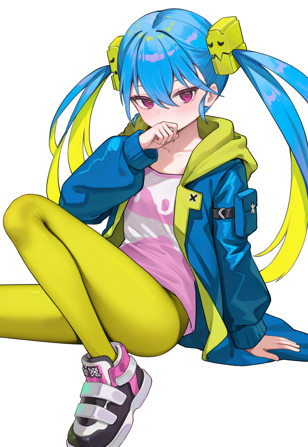 megasastralparty,megasastralpartyori,blue hair,hair between eyes,twintails,long hair,colored inner hair,pink eyes,hair ornament原皮 服装tag