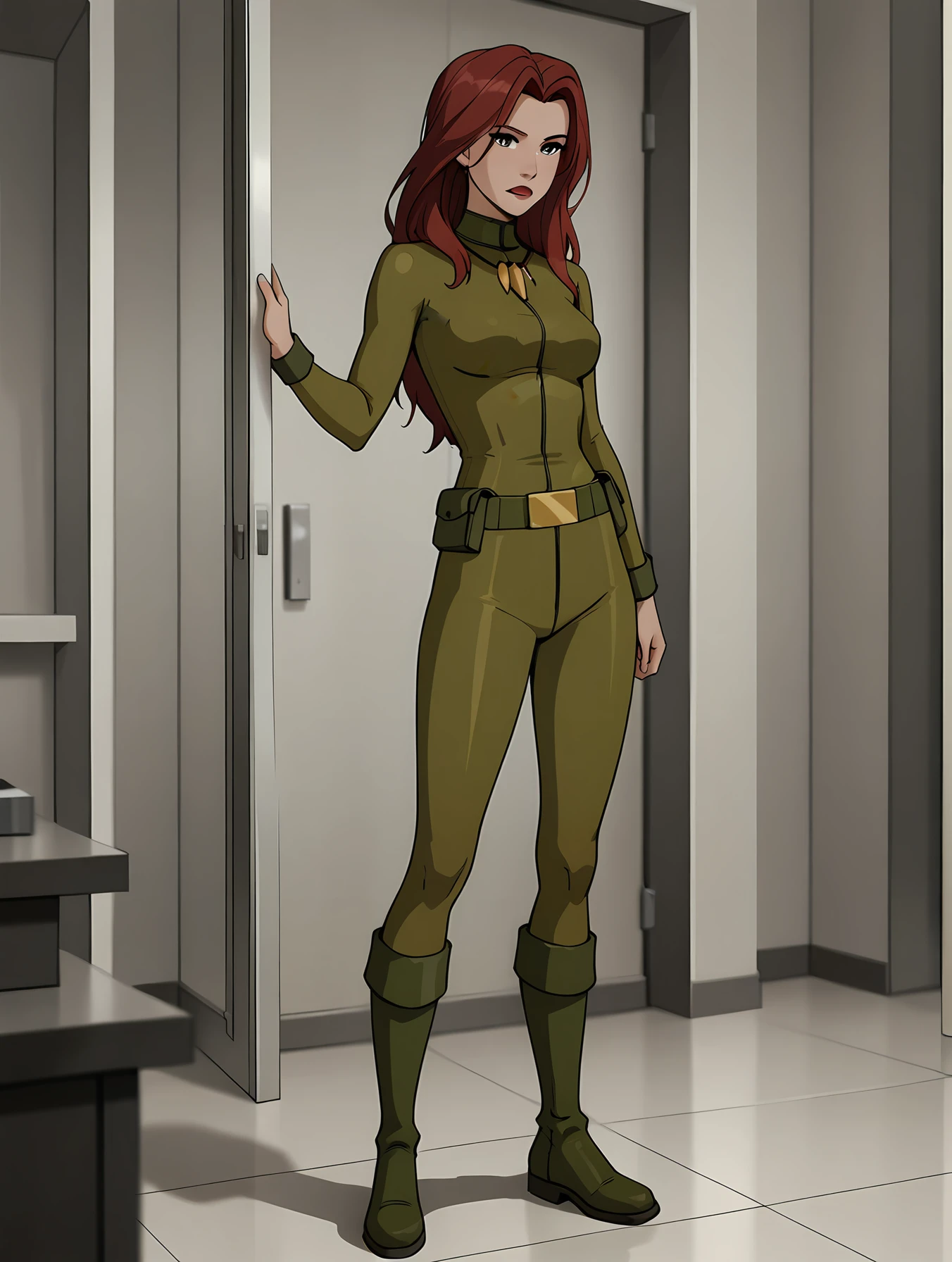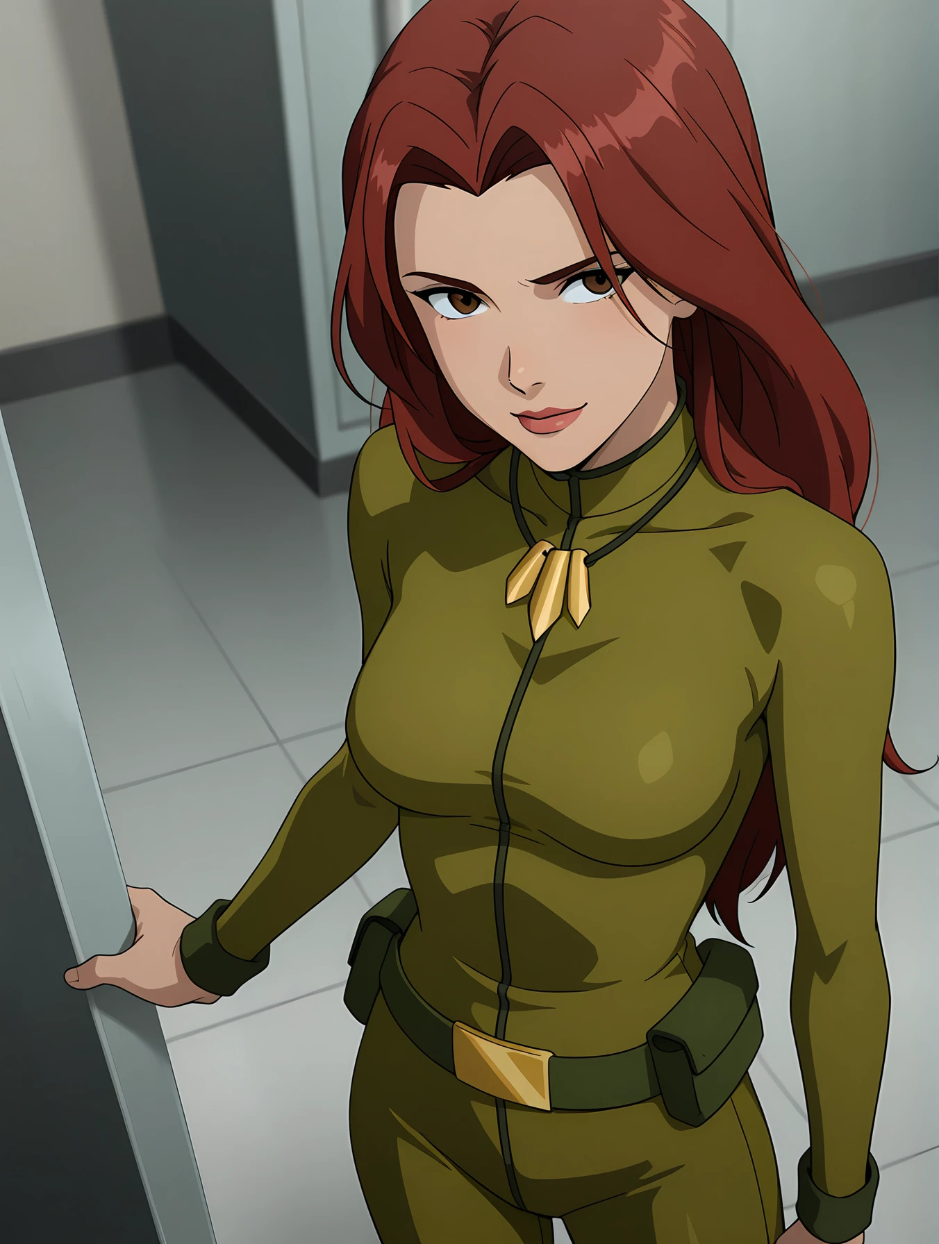 gr-valentina, brown eyes, long hair, red hair hair, lipstick, necklace