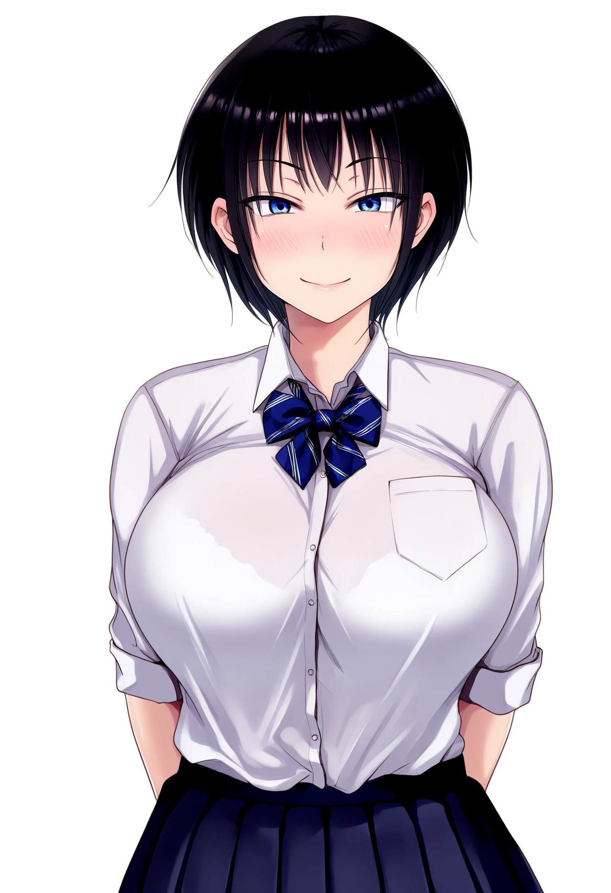 Basic prompts : 1girl, enomoto ryouka, short hair, black hair, blue eyes, large breasts