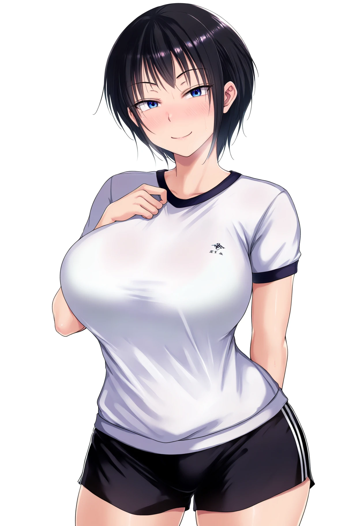 Gym Uniform prompts : white shirt, black shorts, gym uniform, short sleeves, gym shirt, short shorts