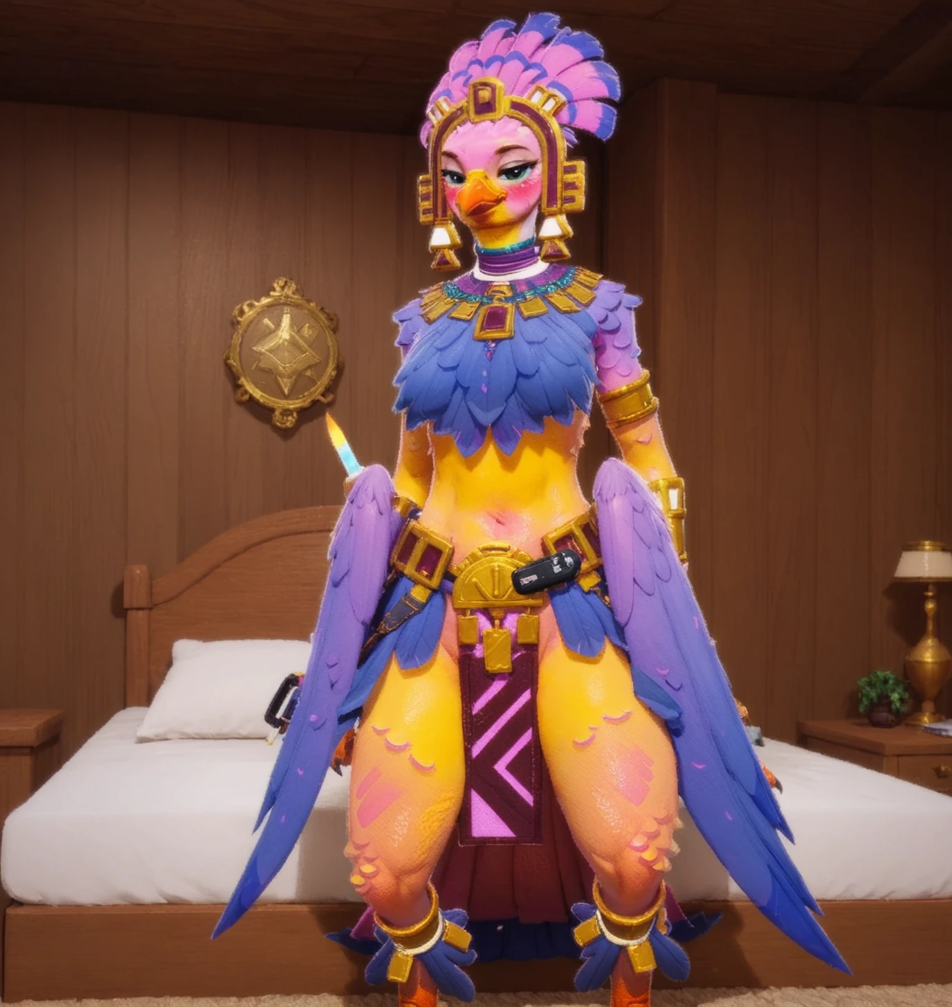 feathers, quetz, jewelry, wings, talons, beak, 1girl, winged arms,