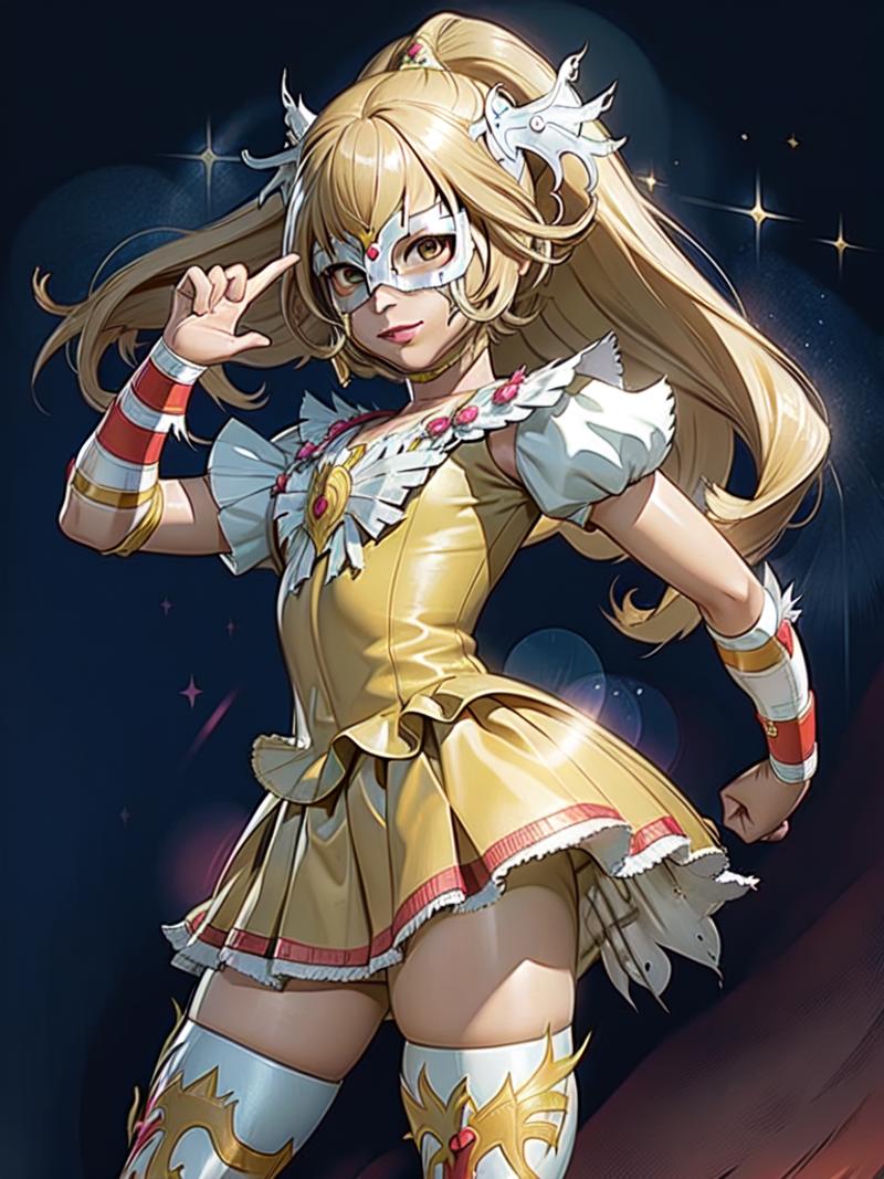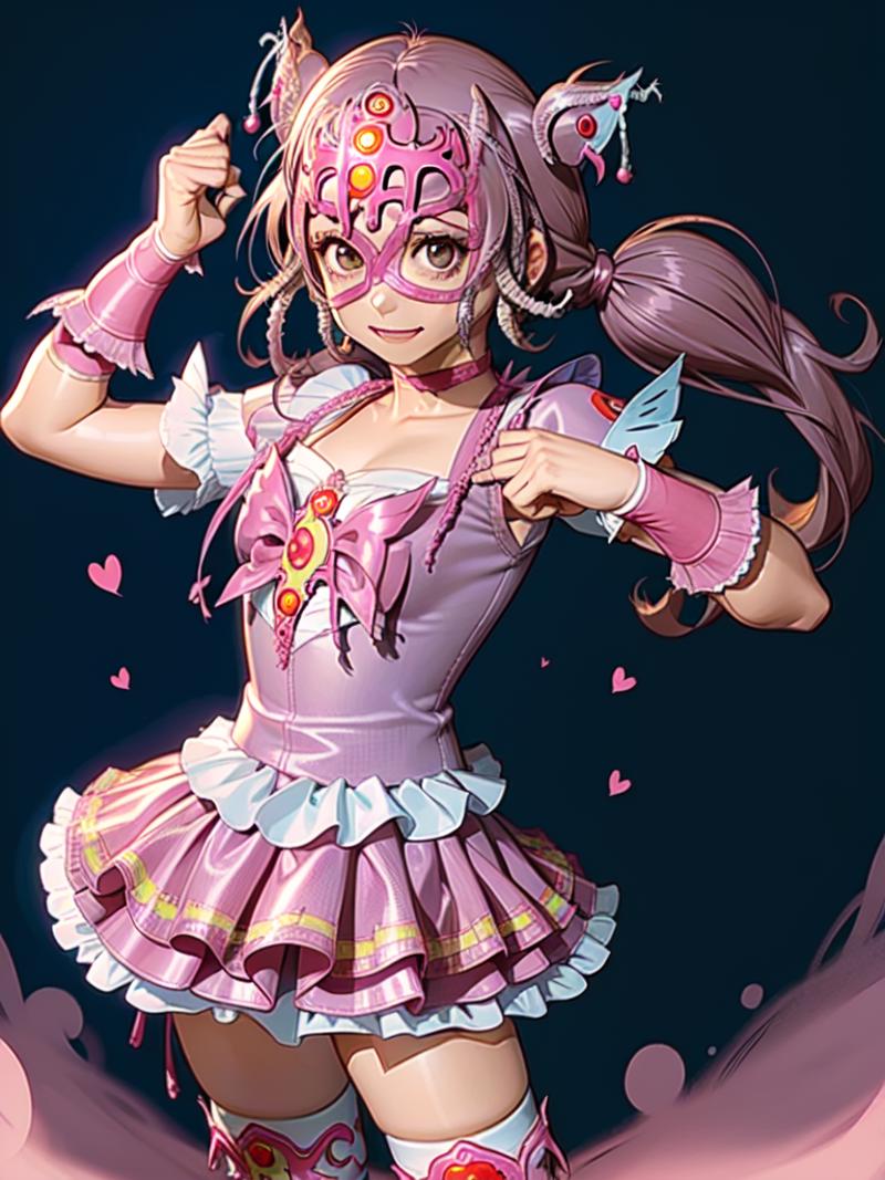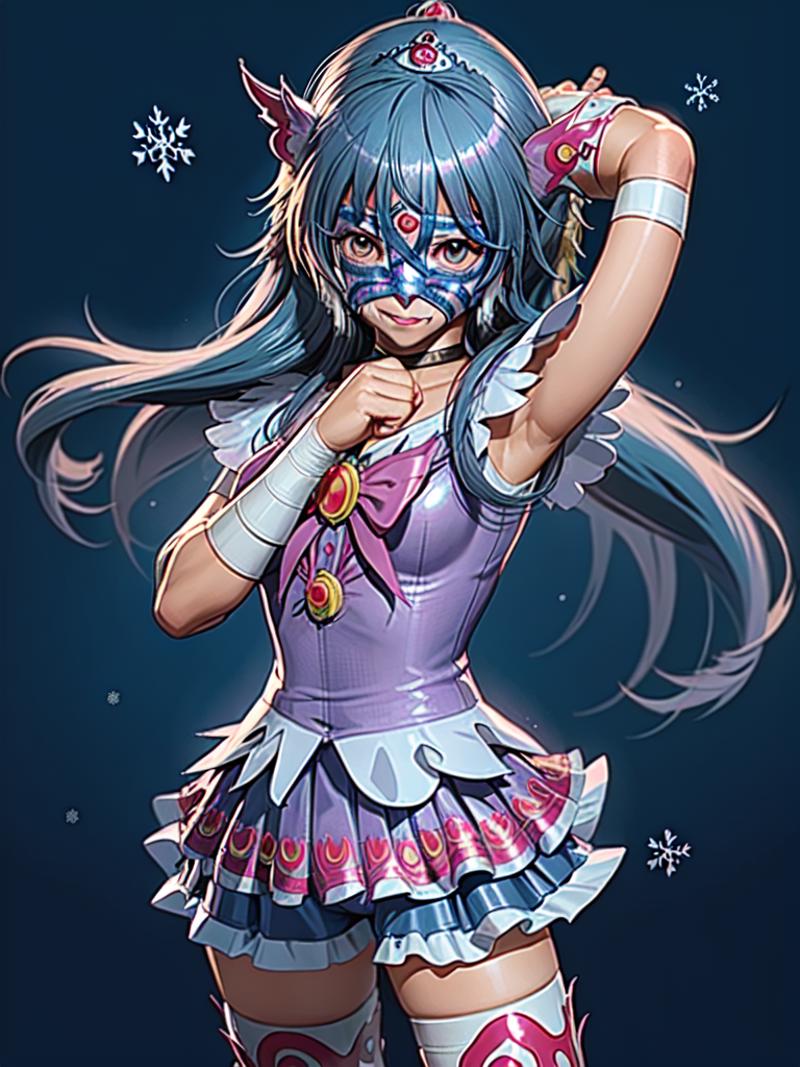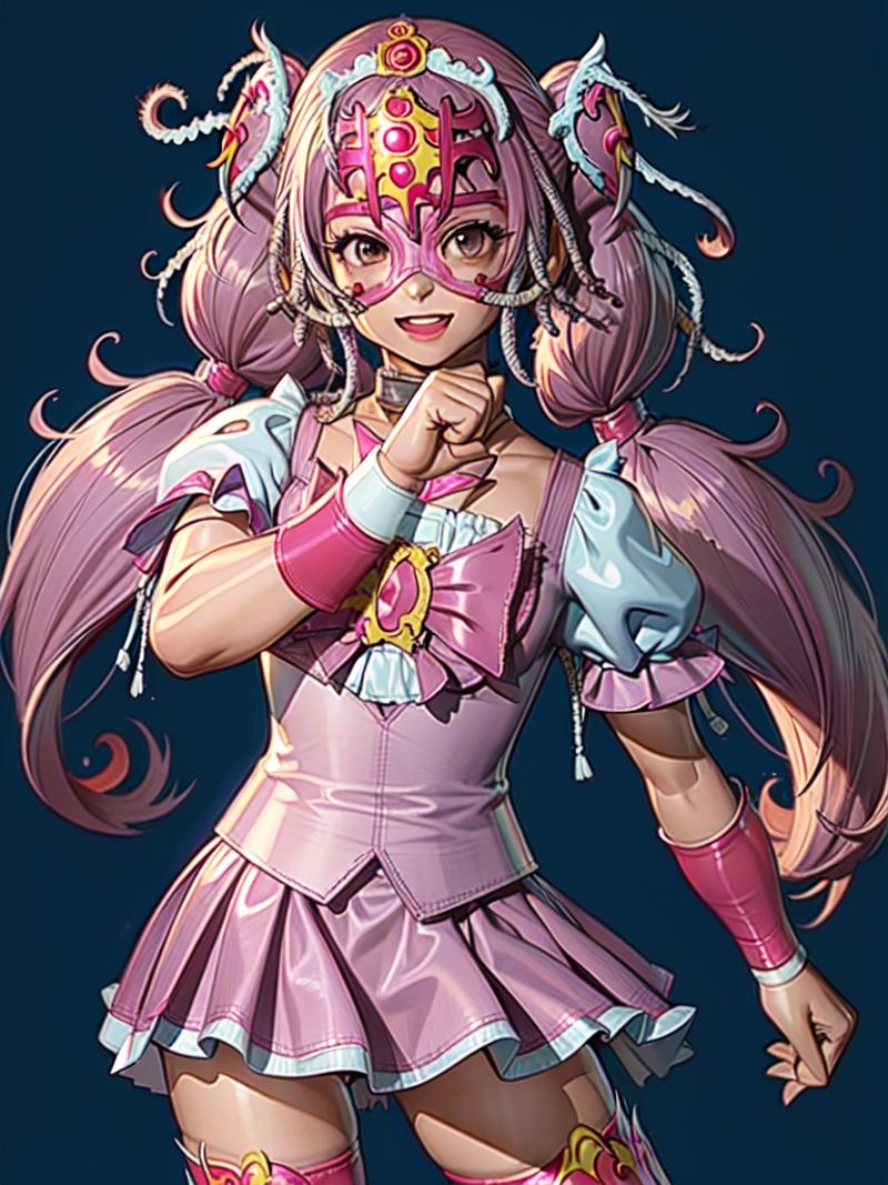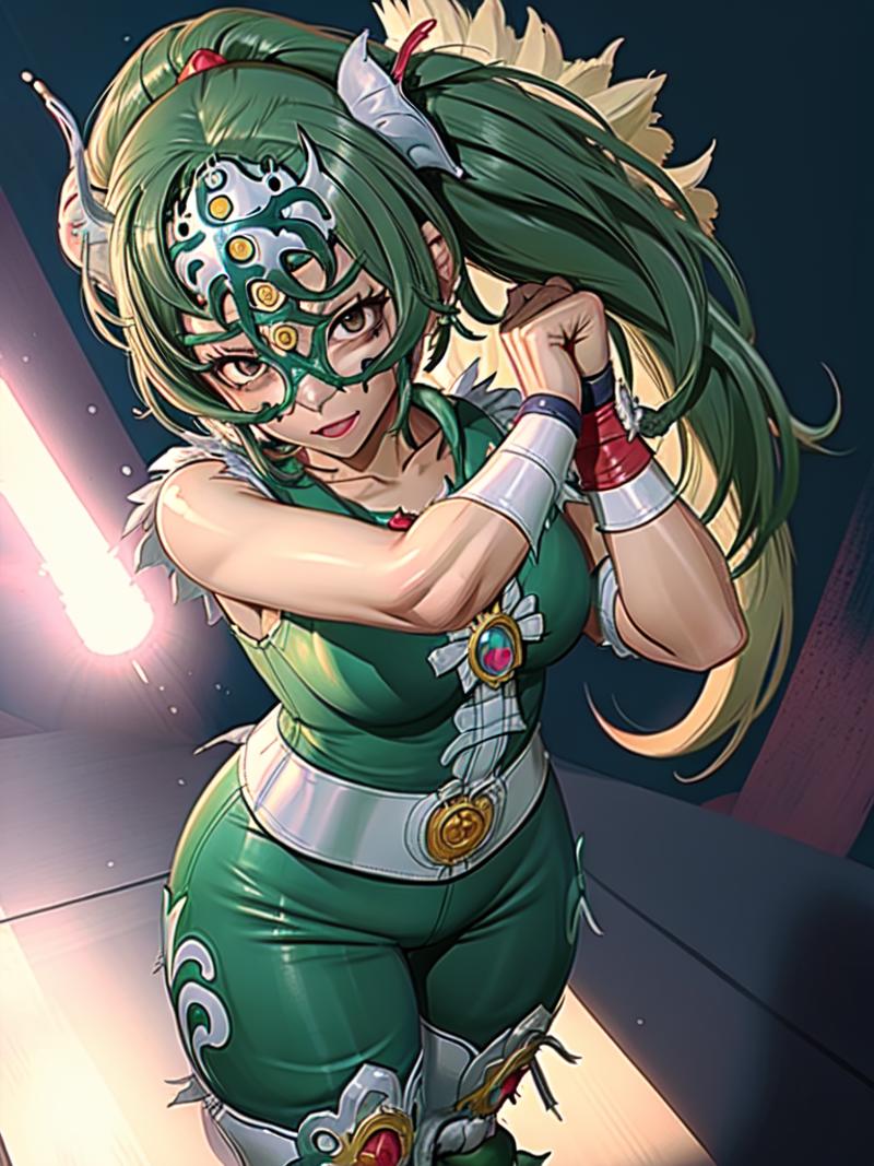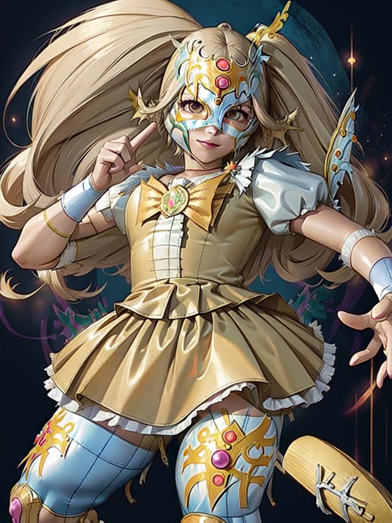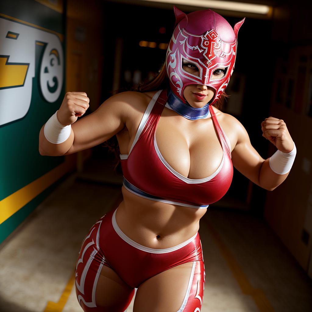 This model was trained on 35 images of various types of luchador masks, worn by both males and females. All of the sample images just use "luchador_mask" in the prompt, and with a weight of 1. Even though there were only a few images with ear or horn-like elements in the training set, there does seem to be a tendency to add those details. (I'm guessing superhero masks in the various checkpoints are influencing this.) You can reduce this issue by adding things like "horns" and "cat ears" in the negative prompt.