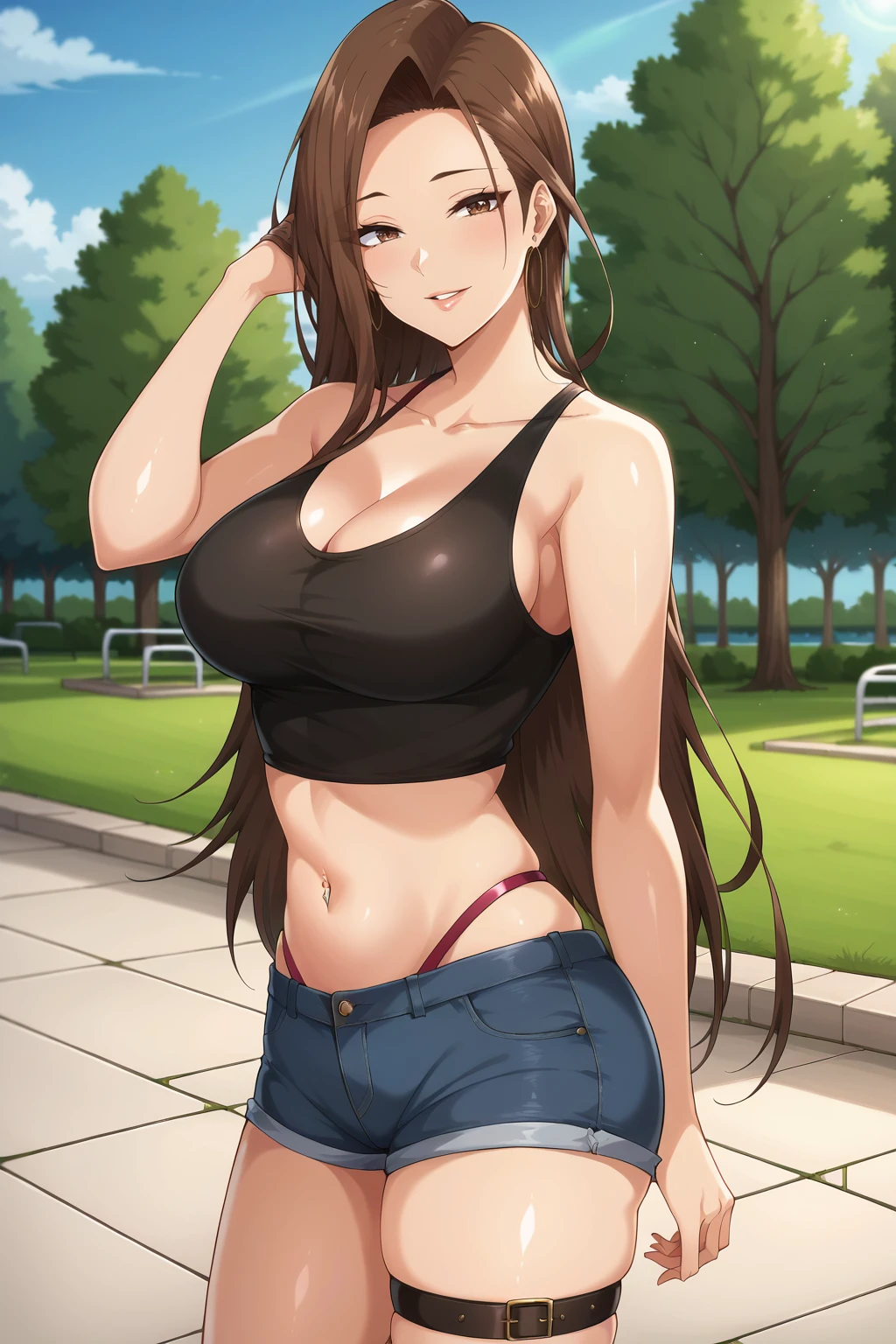 risa hamazaki, brown hair, shiny hair, very long hair, brown eyes, mature woman, shiny skin,