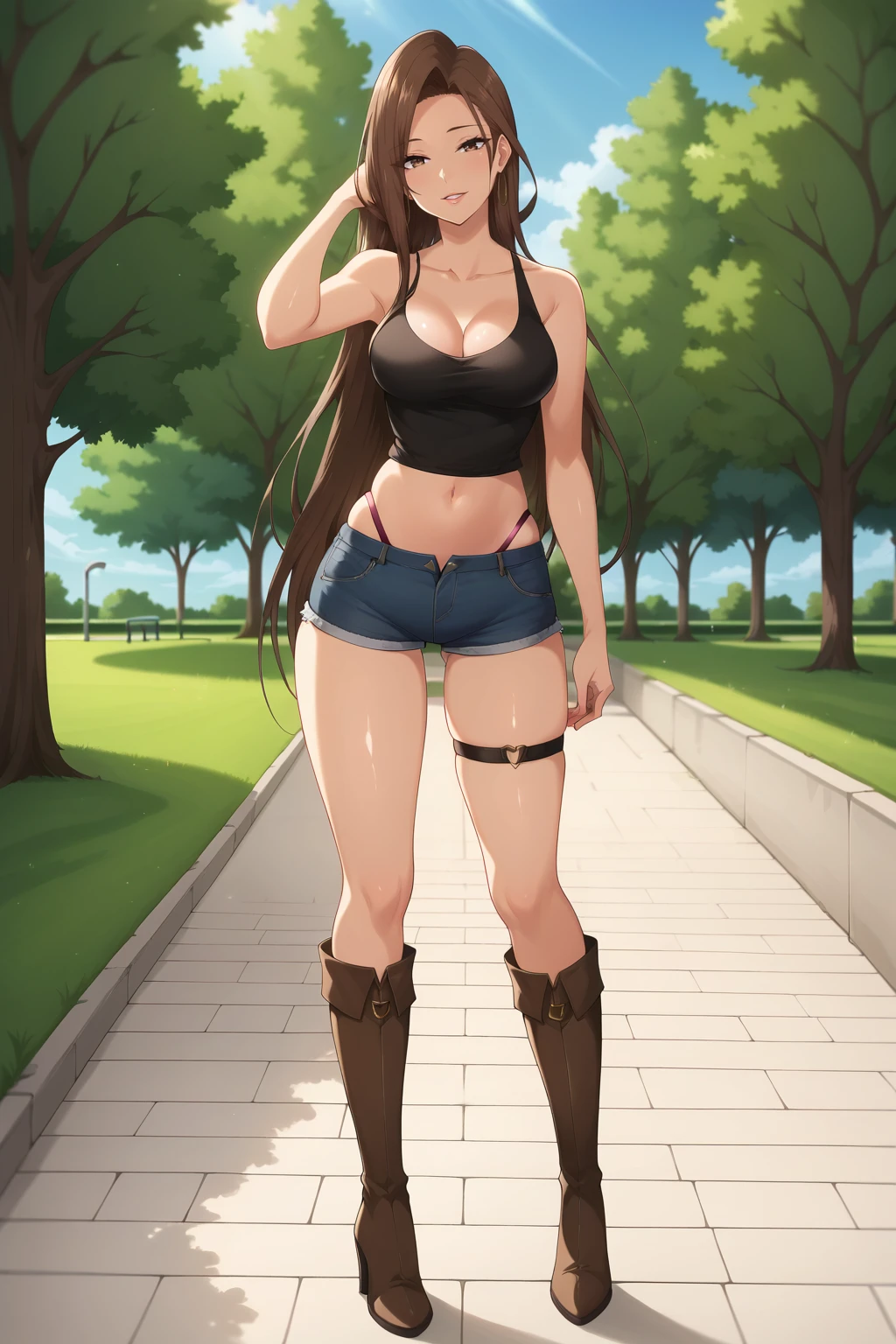 Triggers: risa hamazaki, brown hair, shiny hair, very long hair, brown eyes, mature woman, shiny skin,
