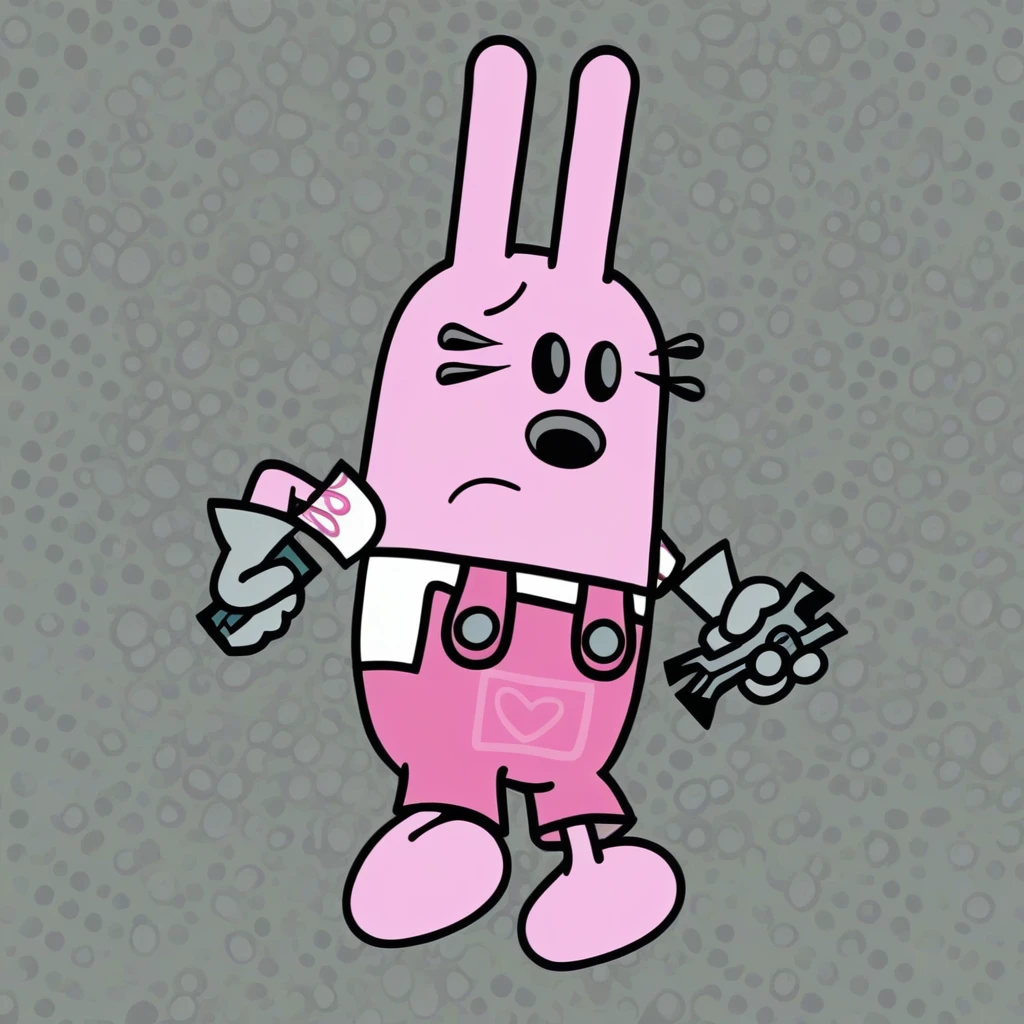 FanonWidget, rounded ears that stand upright,eyelashes overlaping head, small dark eyes,bean eyes, small dot eyes,animal nose, square head, detailed art style,medium breast, wide hips,Pink colored, pink skin, pink fur,
