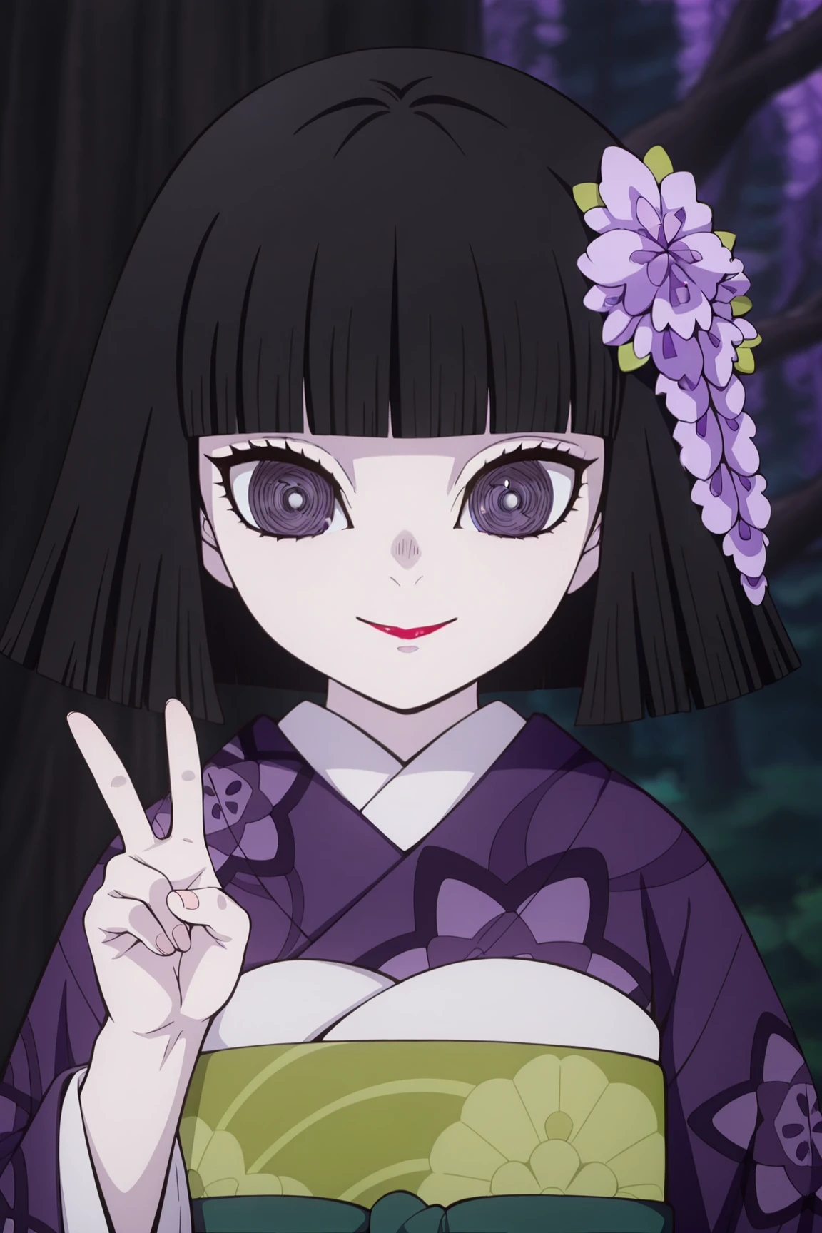 ➜ KiriyaUbuyashikiDSILXL, pale skin, black eyelashes, red lips, purple eyes, black hair, short hair, bob cut, blunt bangs, hair flower, purple flower, flat ?????, japanese clothes, purple kimono, long kimono, long sleeves, green sash, blue obi]--|======[ 💗 My Settings: 💗 ]======|--[