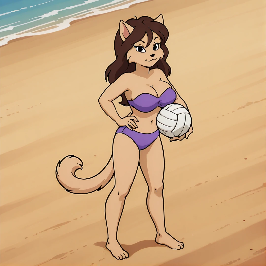 A shapely cat girl beachgoer playing volleyball with her friend Mario and another couple at the beach when Mutilor arrived and began draining the ocean of its water.