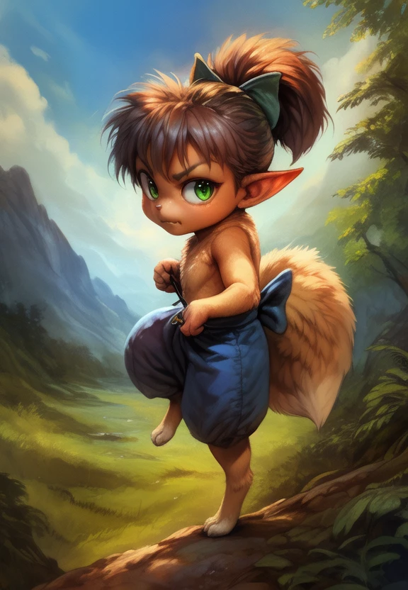 ShippouDemonFox, kemono, green bow on the head, green bow eyes, animal legs, tail,