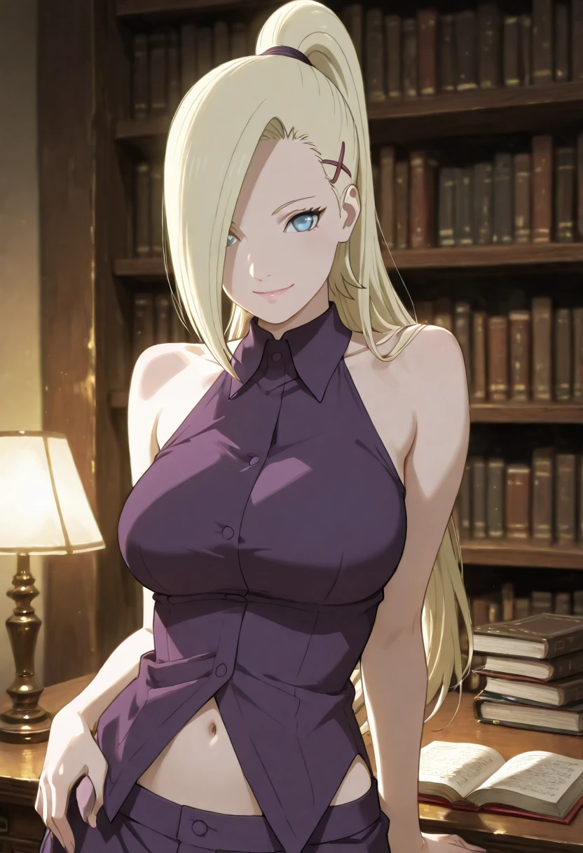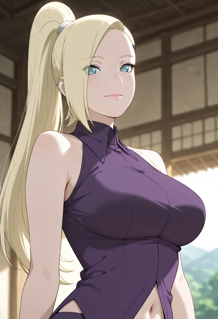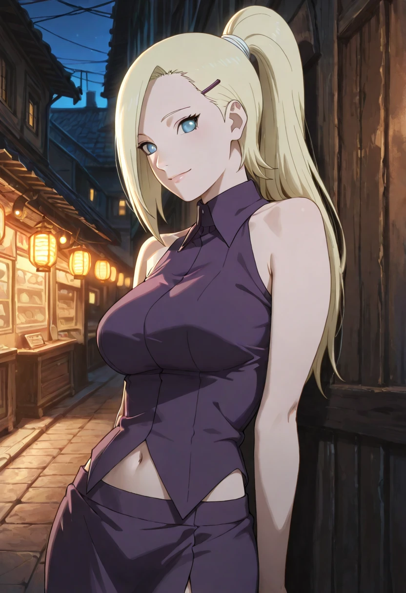 inoyamanaka, ino_boruto, 1girl, solo, blonde hair, long hair, ponytail, hair over one eye, blue eyes,