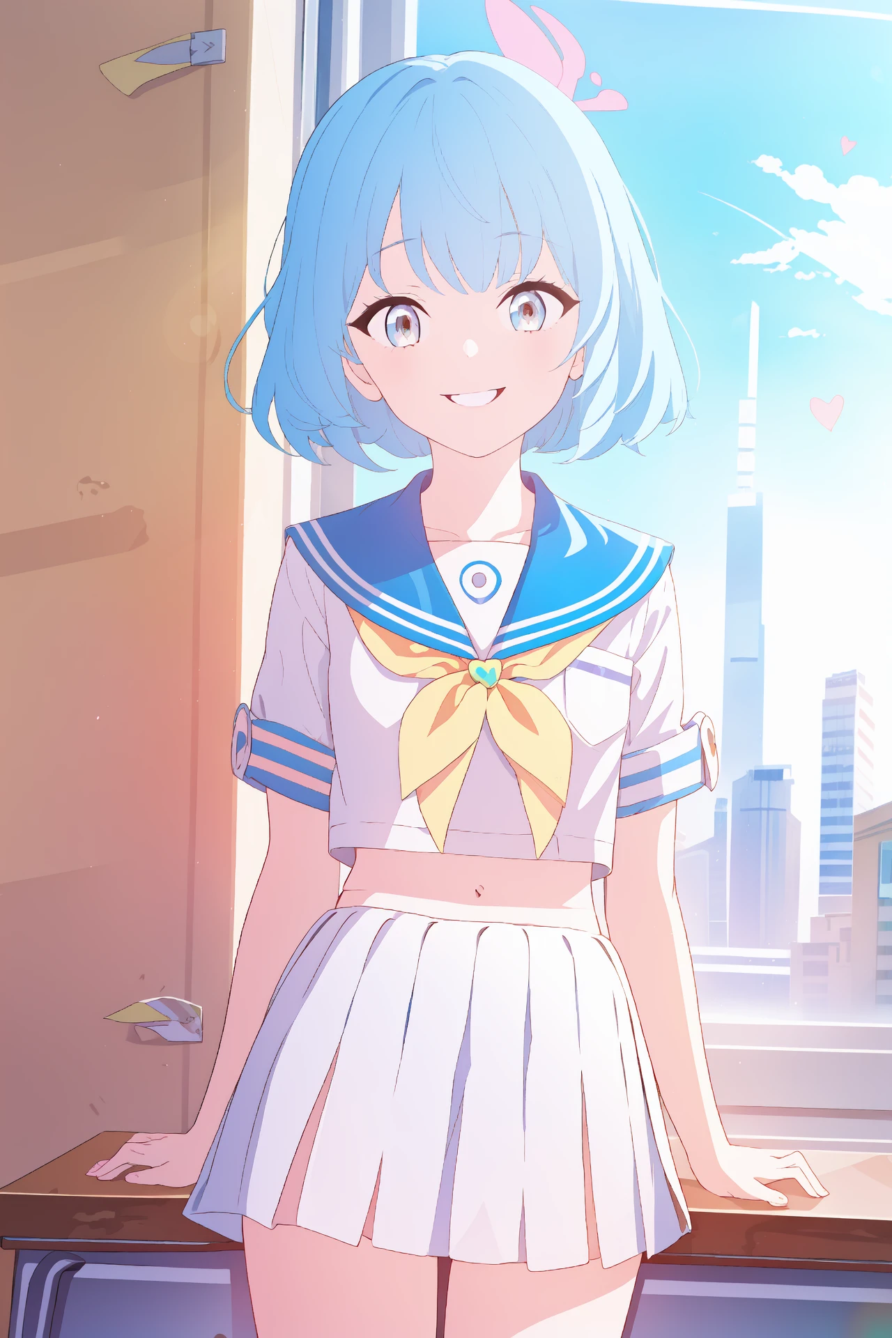 这是一个仿“蔚蓝档案”画风的 Lora,主要为高亮度、柔和色彩、简约的平涂风格。