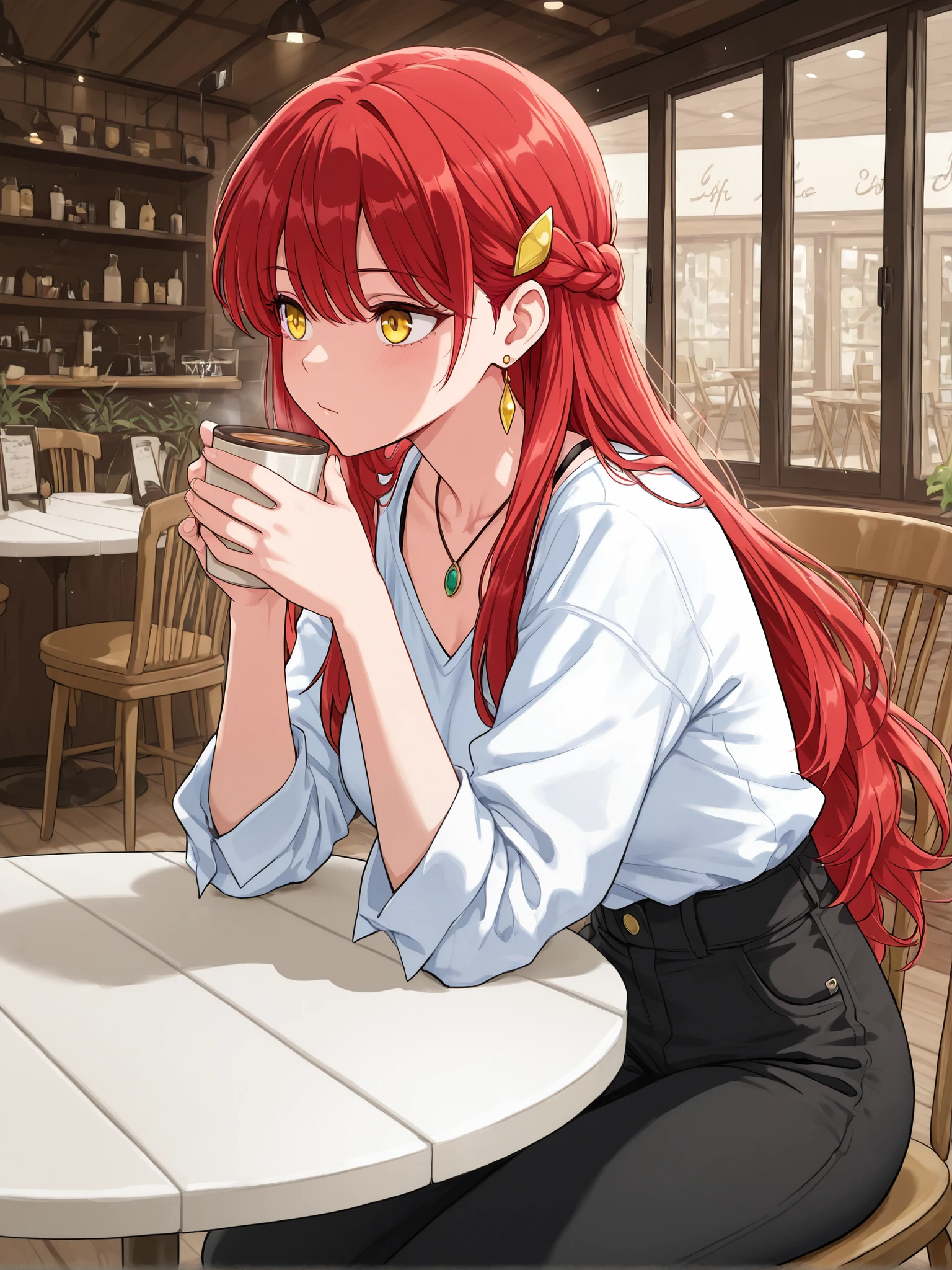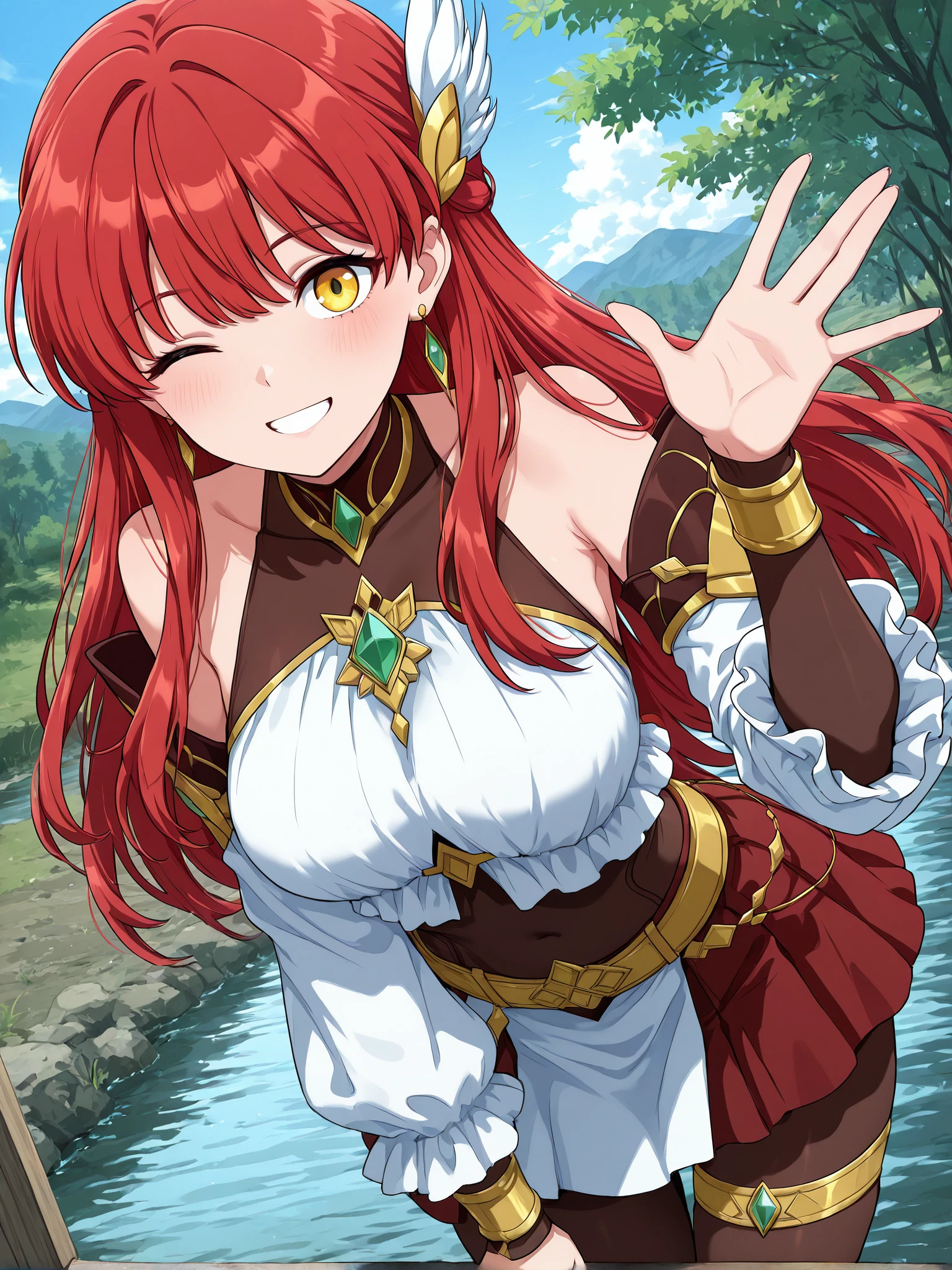 1girl,heda,red hair,long hair,bang hair,yellow eyes,medium breast,