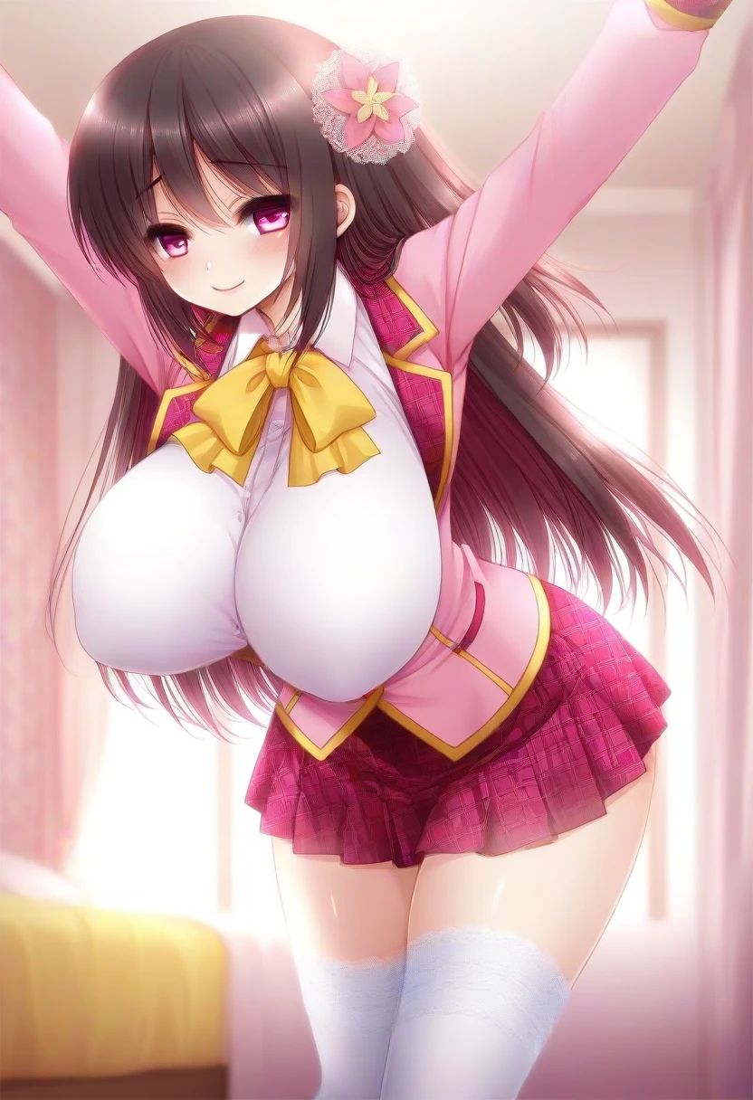 Recommend Prompt:Mihaya Tsukimori, pink eyes, black hair, long hair, straight hair, side tail, hair ornament, sidehair,