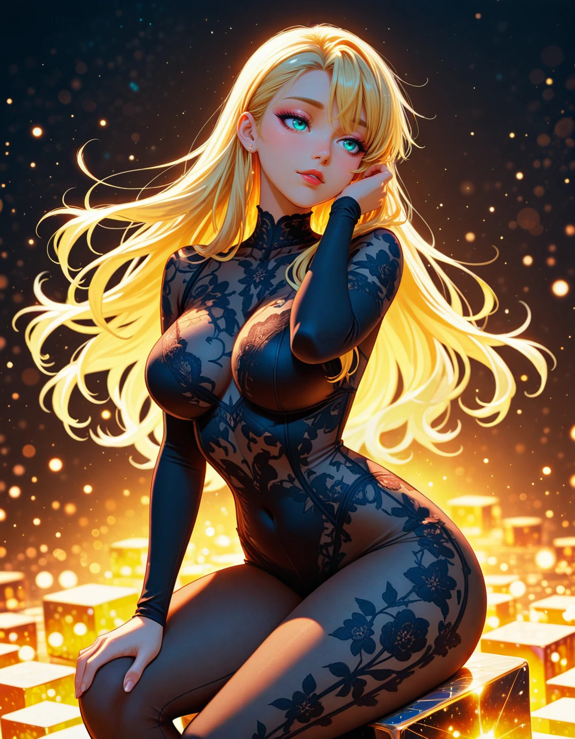 ๐ Radiant Allureluxurious lingerie with sheer silks, cosmic sparkles, reclining pose, sensual yet elegant expression, high detail lighting