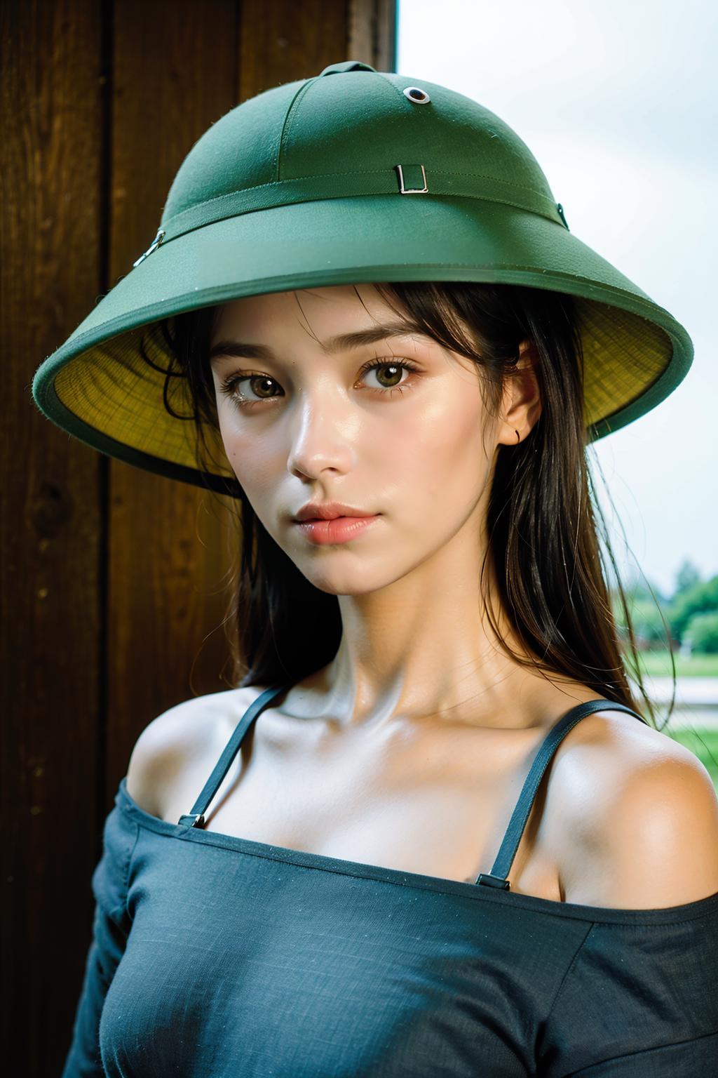 It is suggested to use the following trigger words: MuCoi, vietnamese, pith, helmet, green headwear,