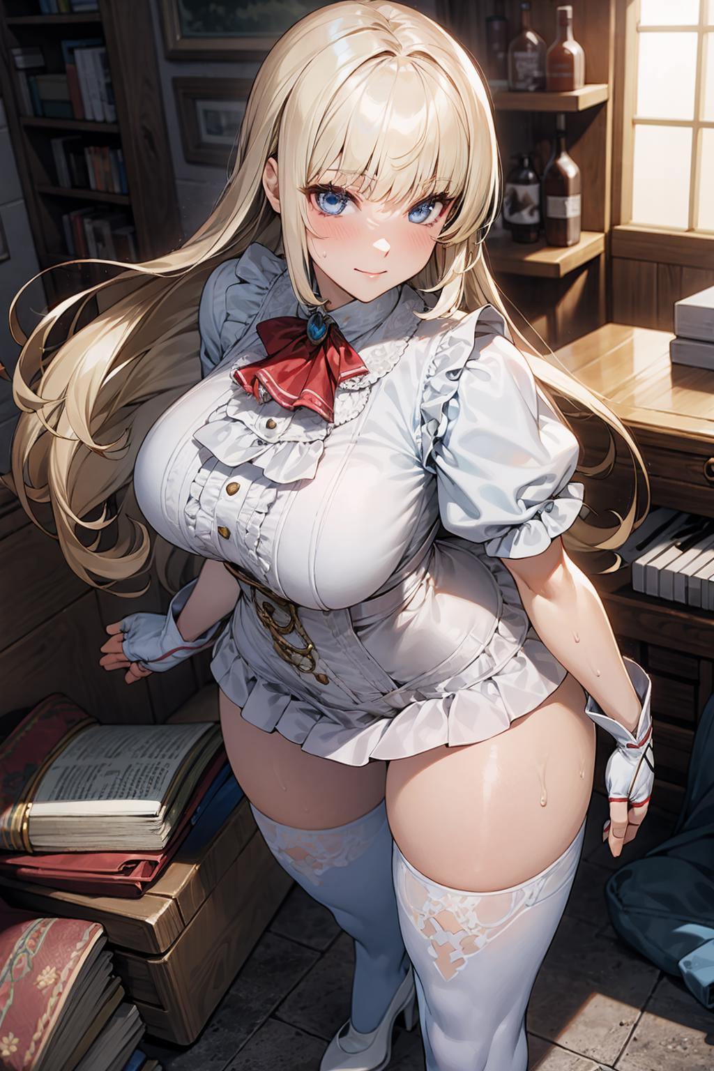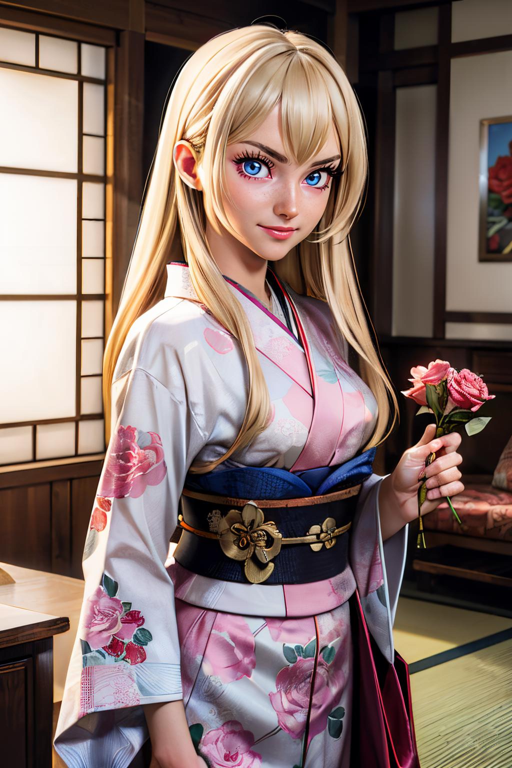 lily, blonde hair, long hair, bangs,