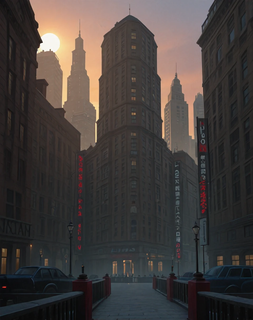 Cities in a Dieselpunk setting tend to be more densly packed, built taller, and have access for blimps and even planes in some cases. There are also pipes in use in some cases on the outside of buildings and skyscraper. Not sure why. There is also a heavy use of pneumatic tubes for delivering letters throughout a building or city. Some buildings have a look to them based on unbuilt buildings and skyscrapers, and tend to be larger than real life. There is also a tendency to have buildings that look like the Empire State and Chrysler buildings.