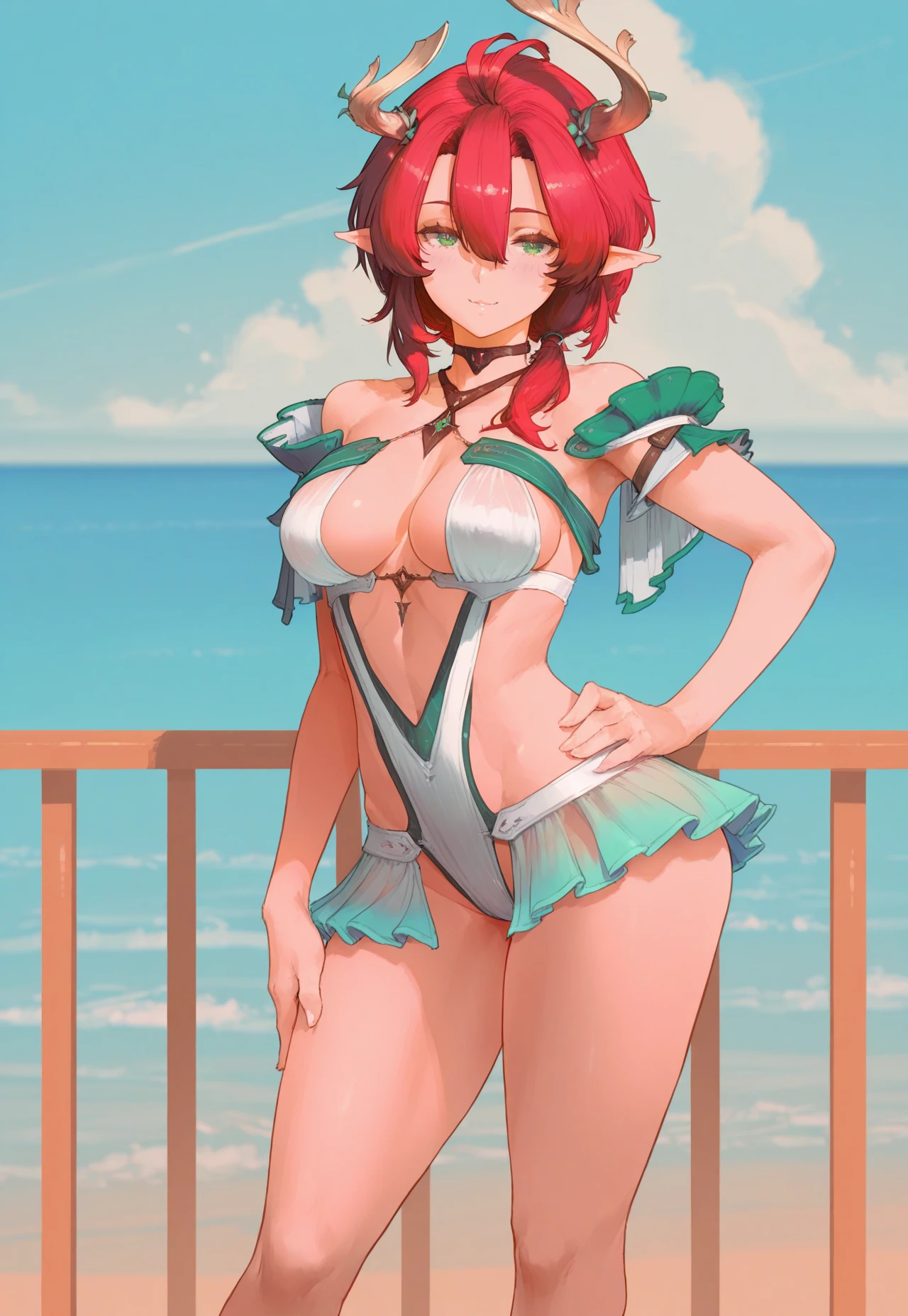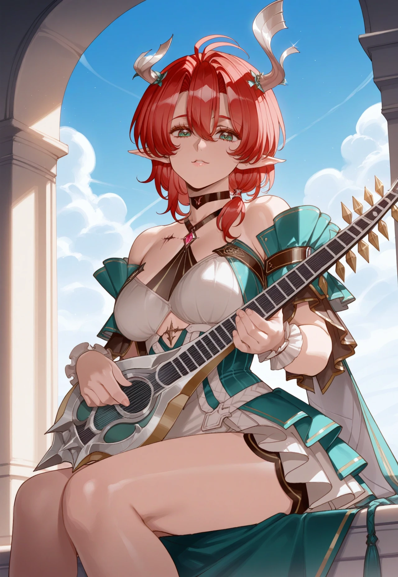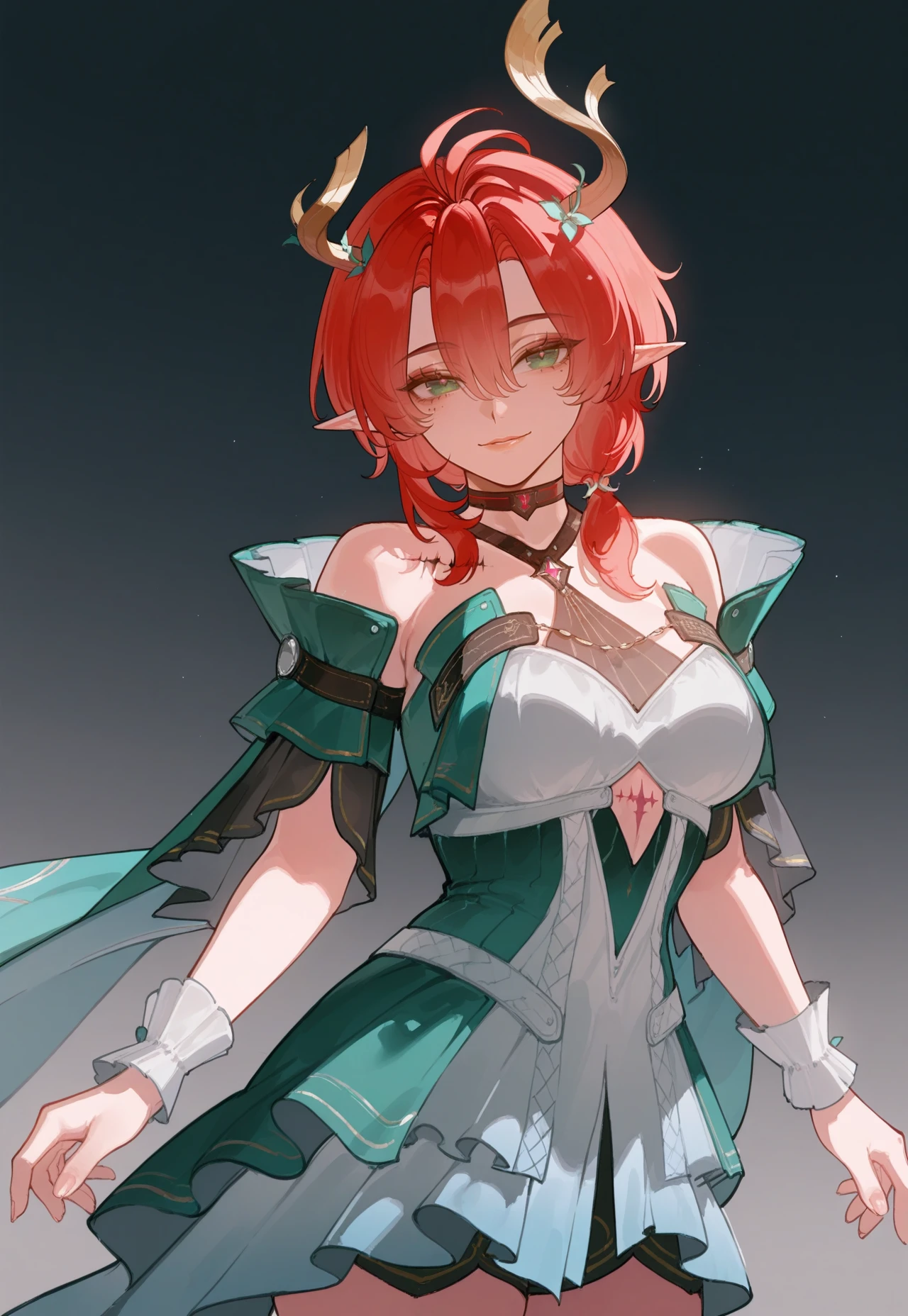 ciaccona \(wuthering waves\), hair between eyes, green eyes, medium breasts,