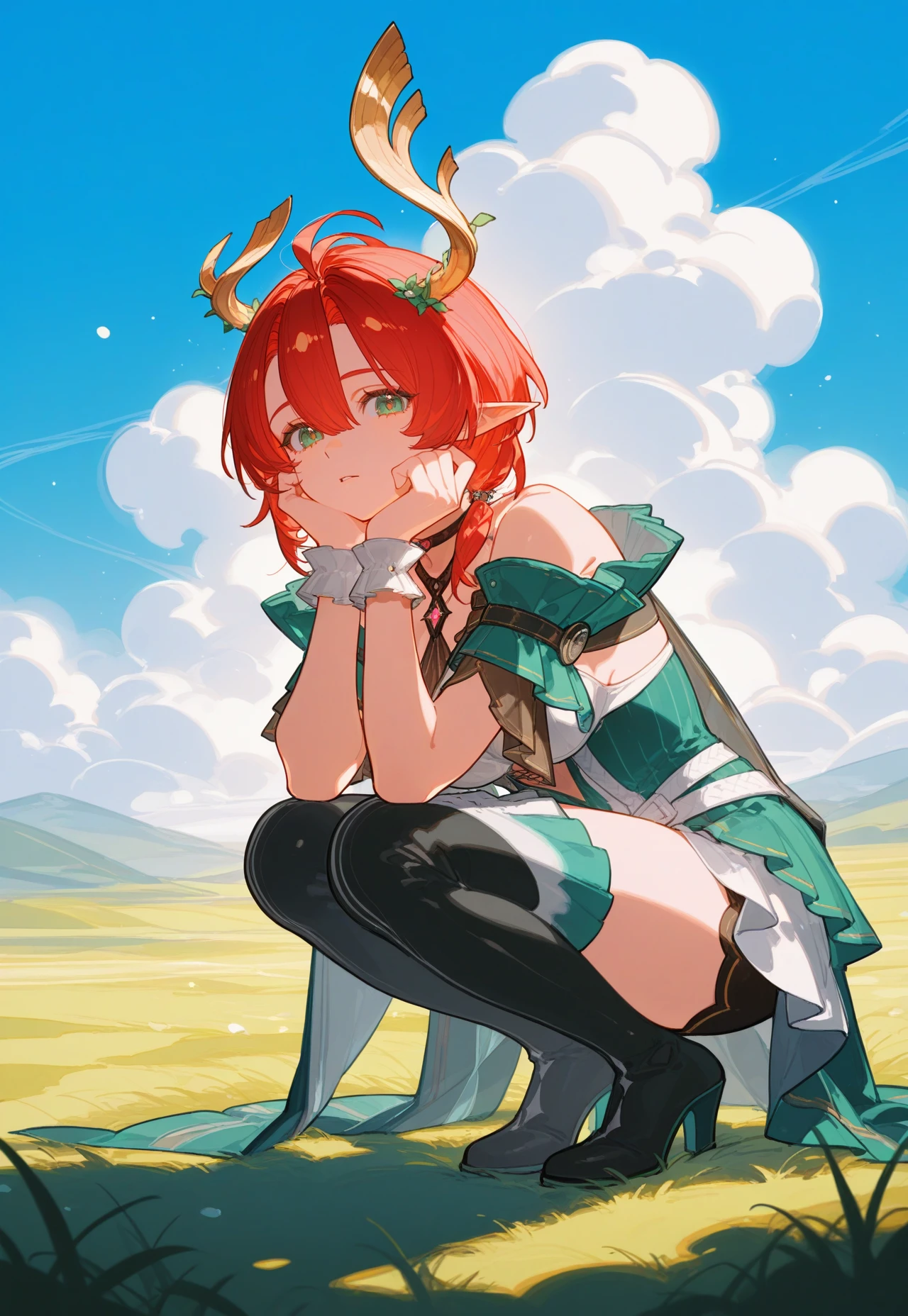 bare shoulders, wrist cuffs, choker, detached sleeves, dress, thighs, thigh boots,