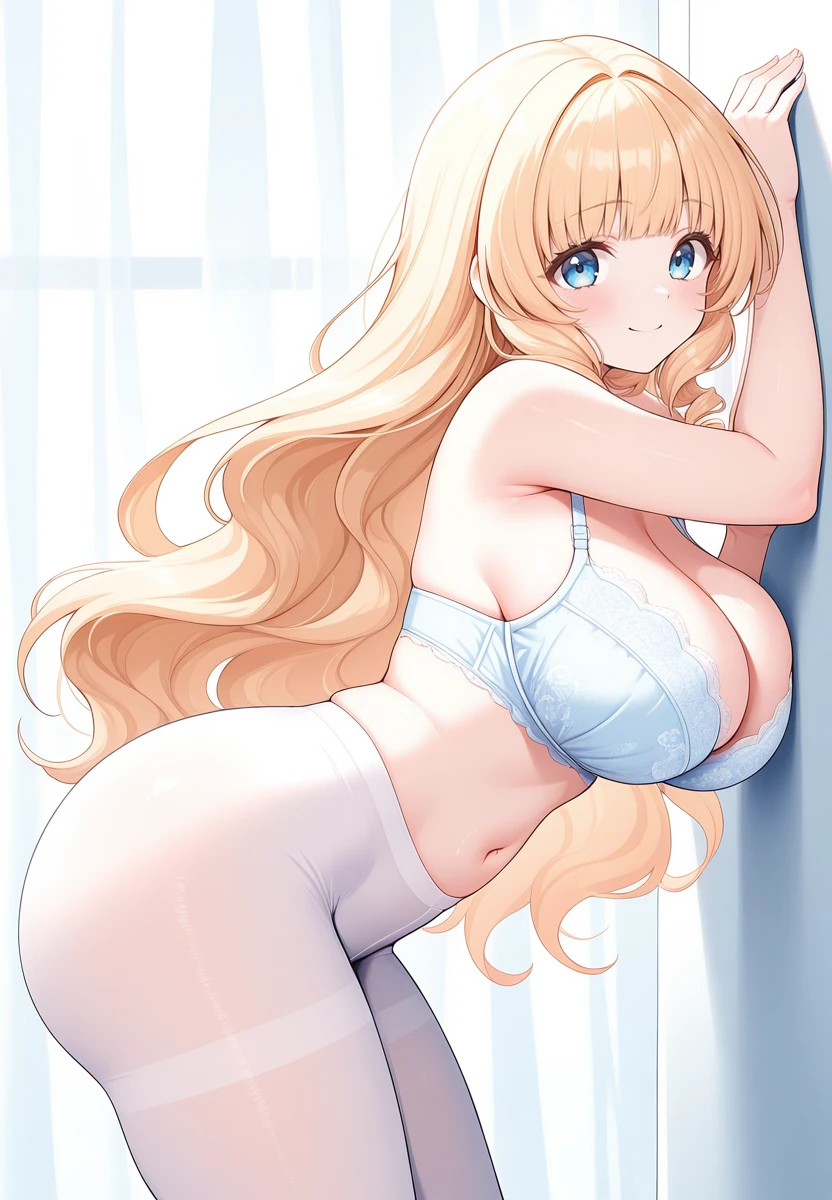 starf, 1girl, blue eyes, blonde hair, long hair, blunt bangs, wavy hair,