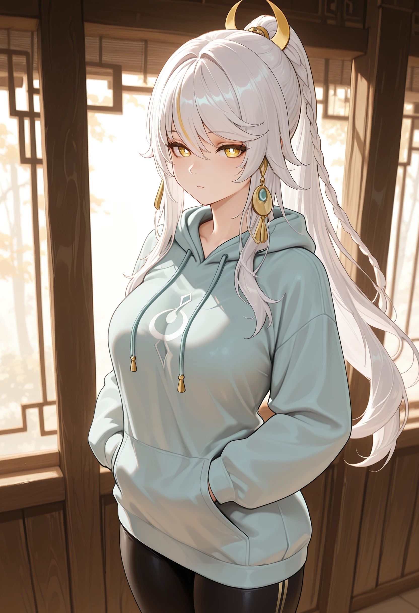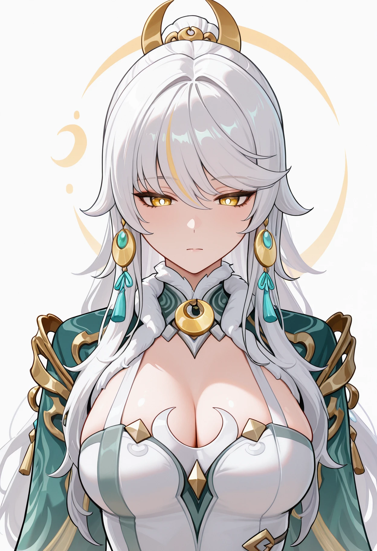 zibai \(genshin impact\), bright pupils, ponytail,braid, white hair, white pupils, yellow eyes
