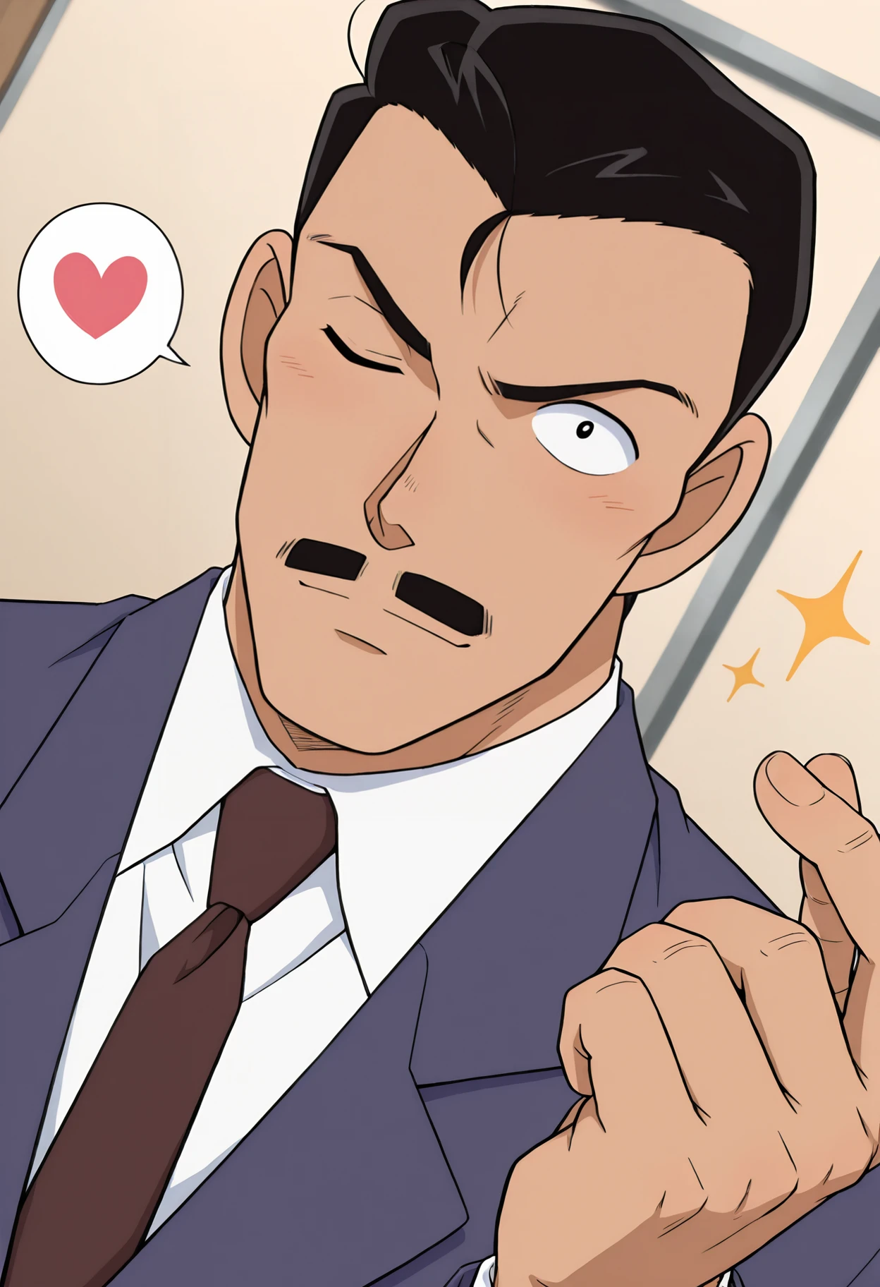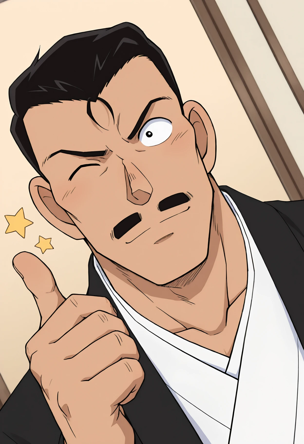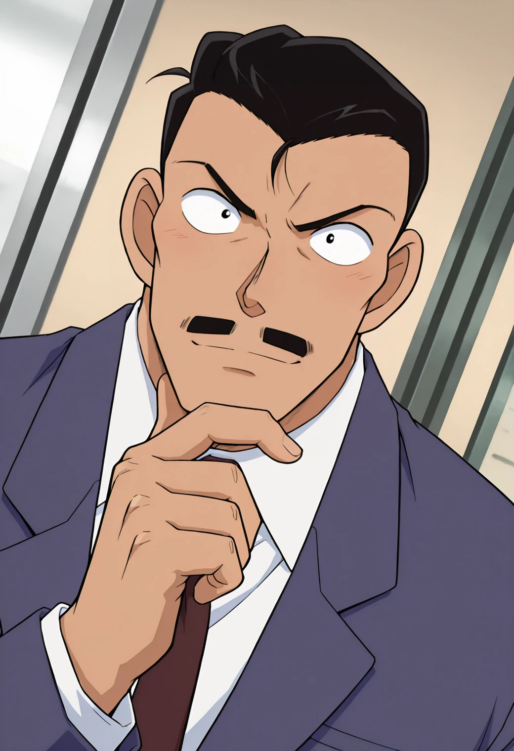 Kogoro Mouri, short hair, black hair, black eyes, facial hair, mustache, sharp nose,
