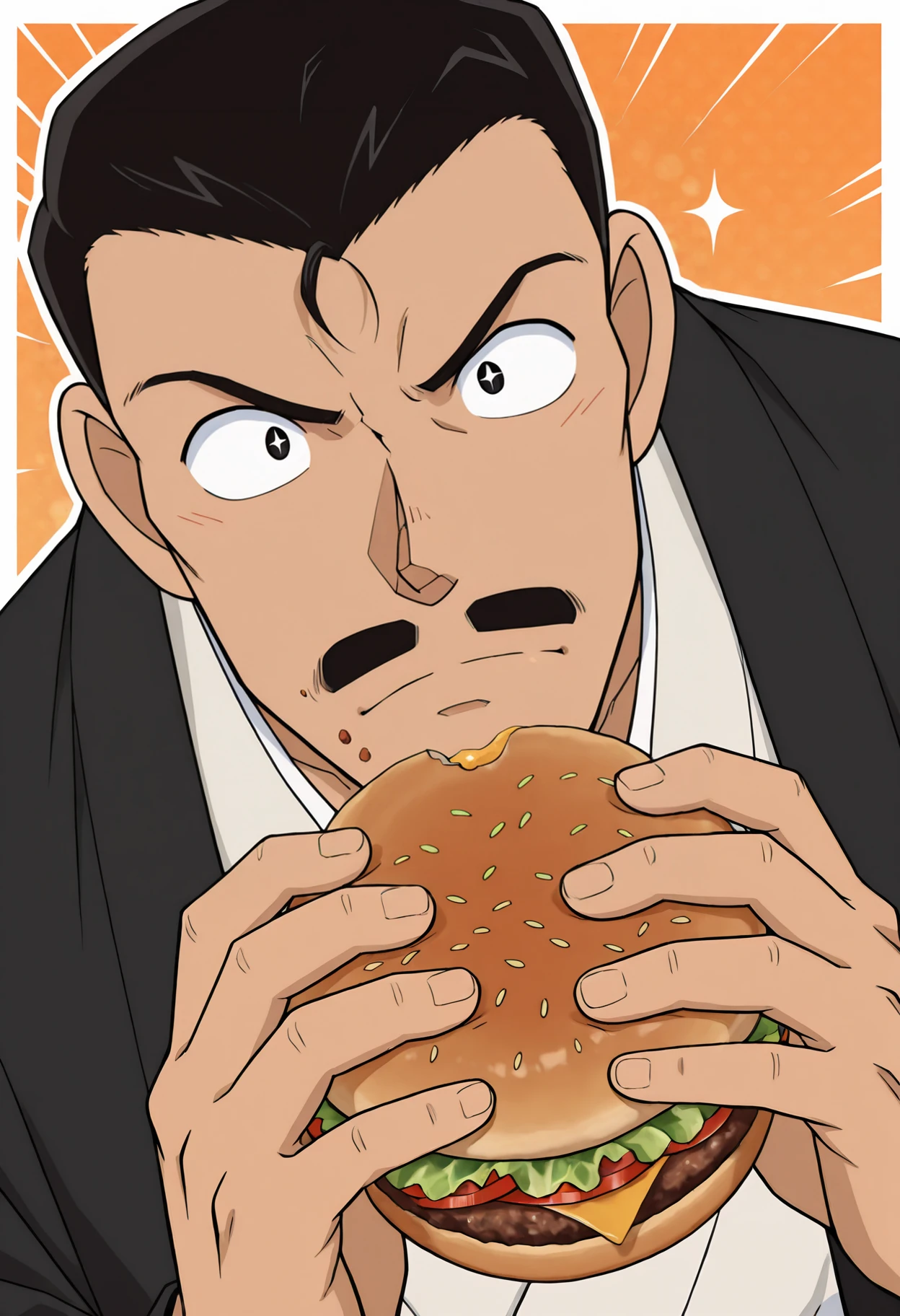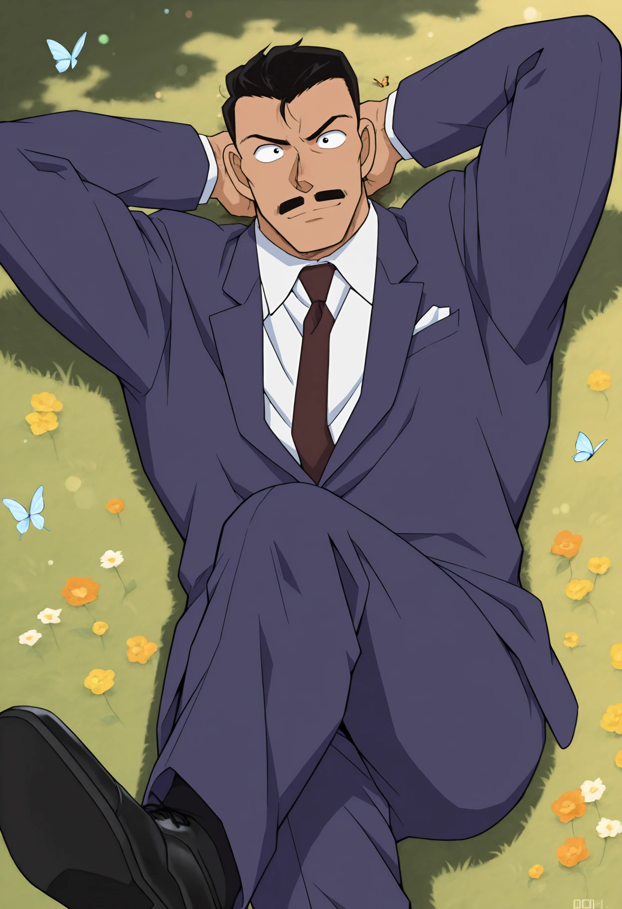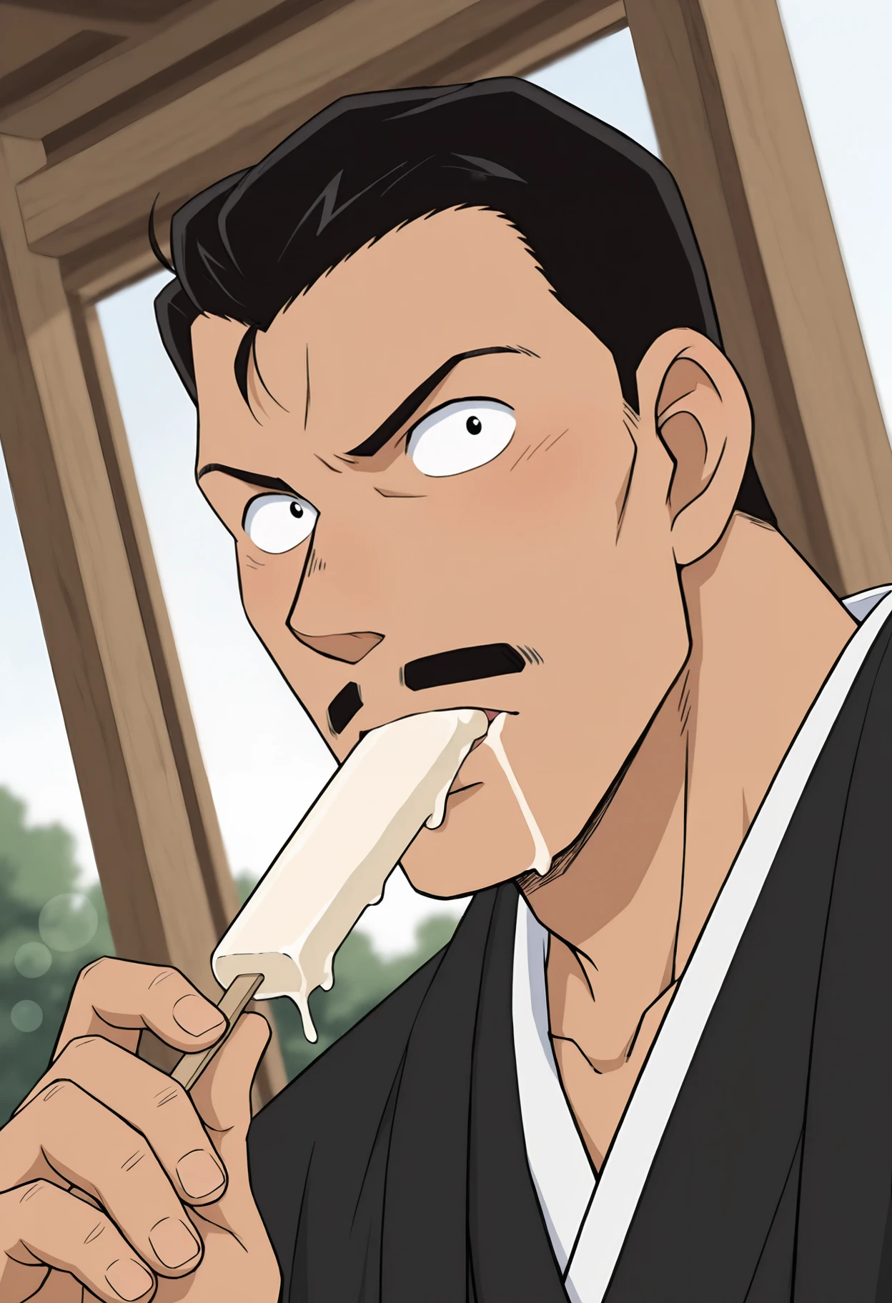 Kogoro Mouri, short hair, black hair, black eyes, facial hair, mustache, sharp nose,