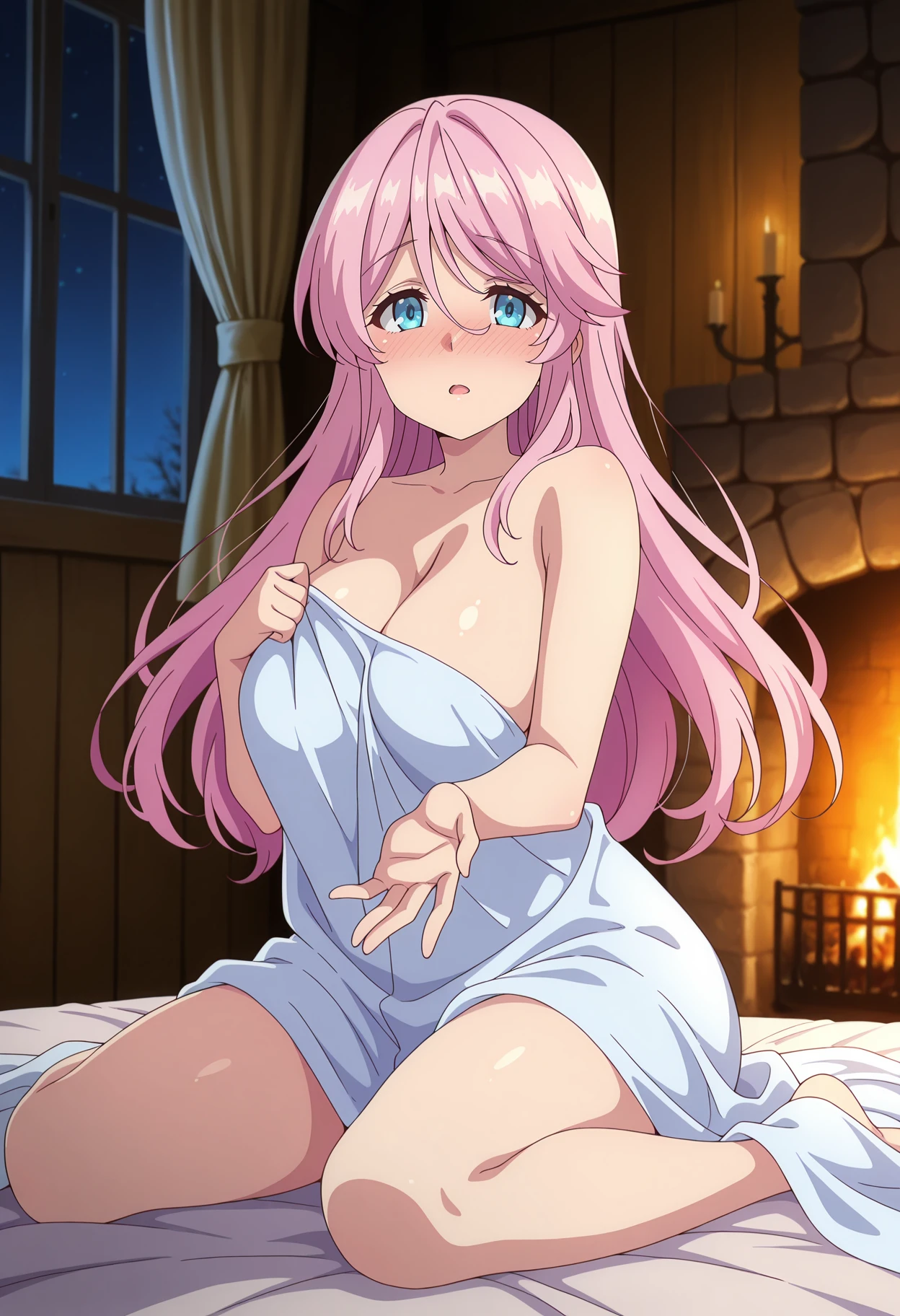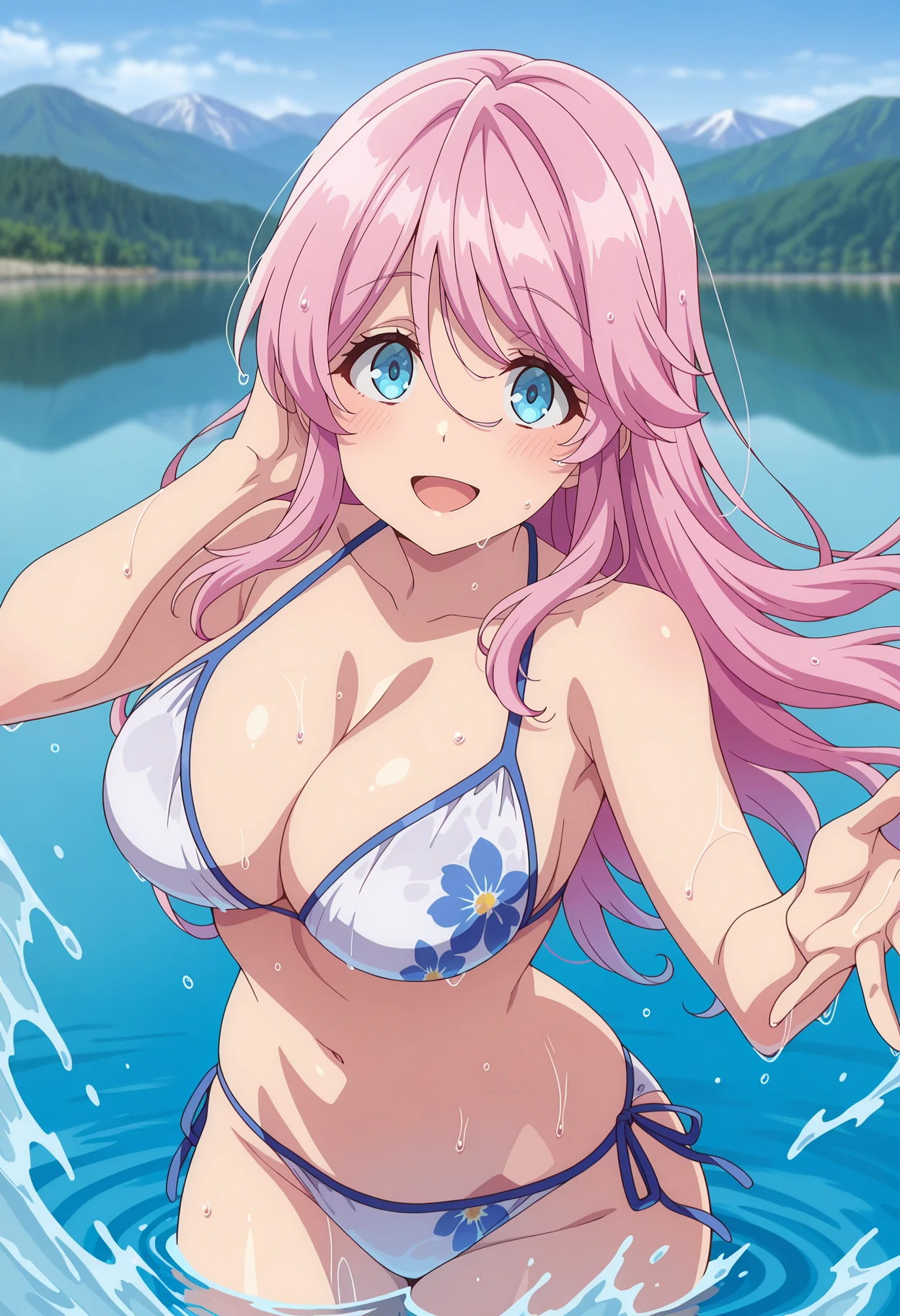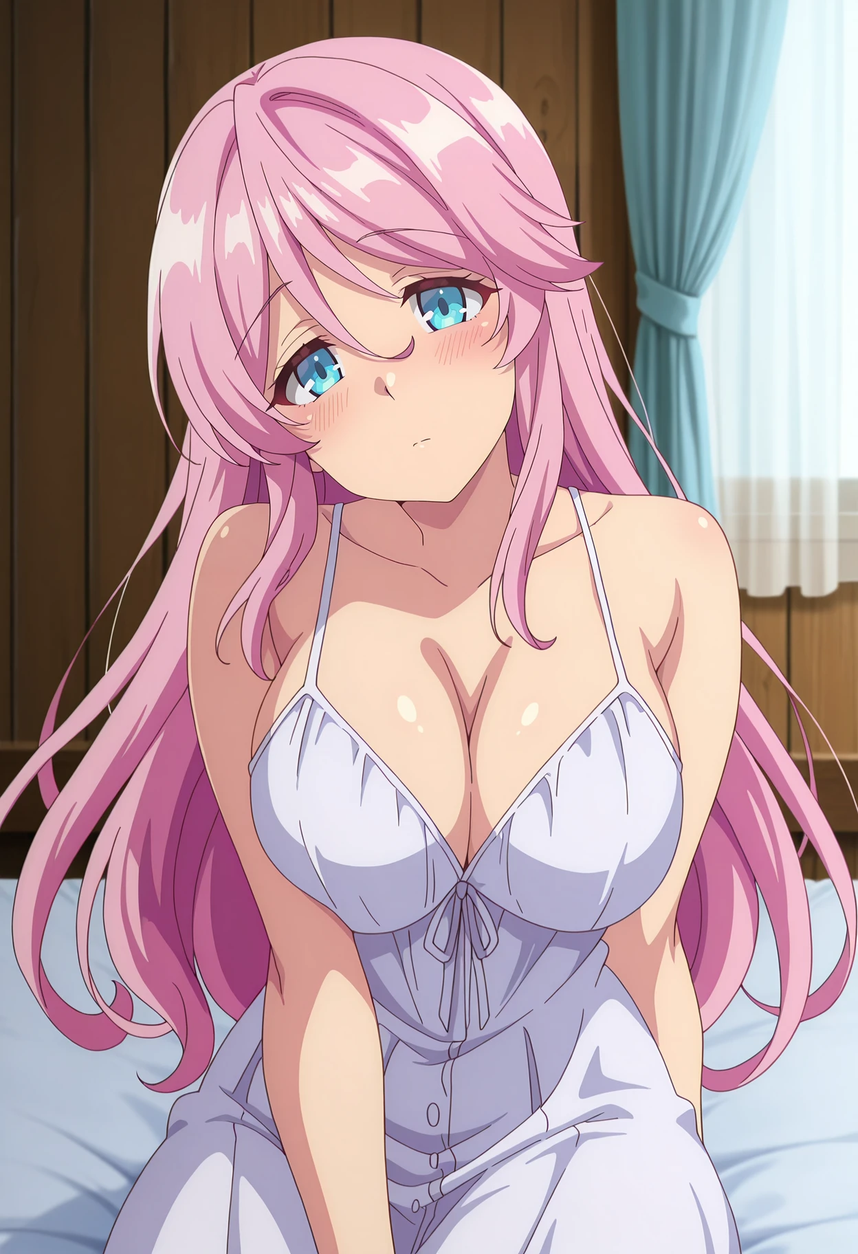 hair between eyes, long hair, pink hair, blue eyes