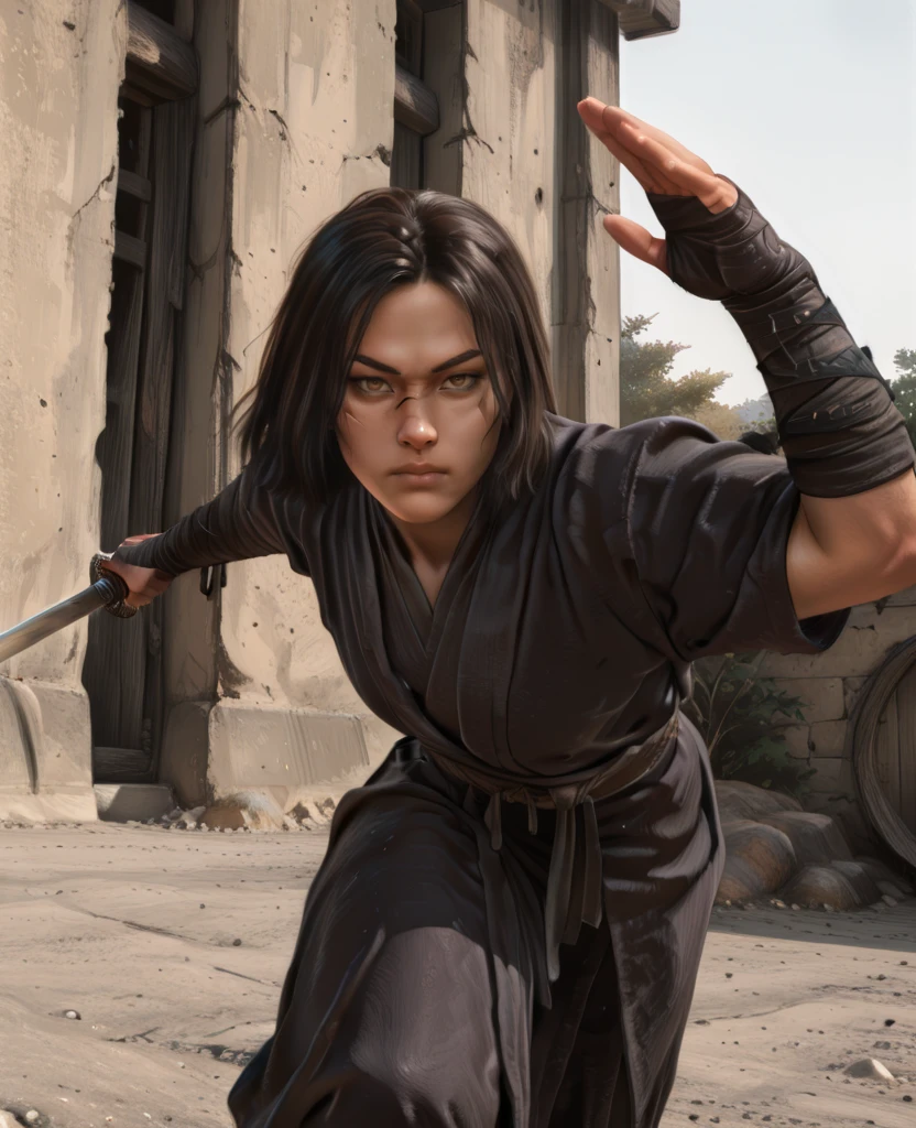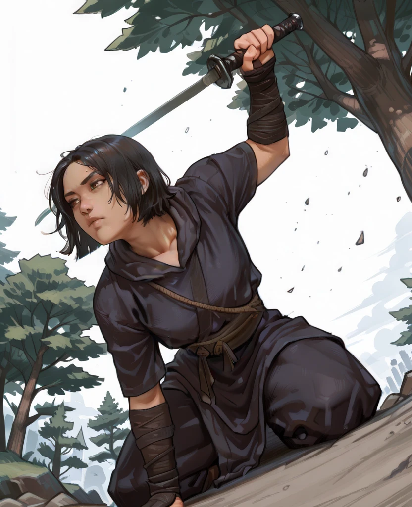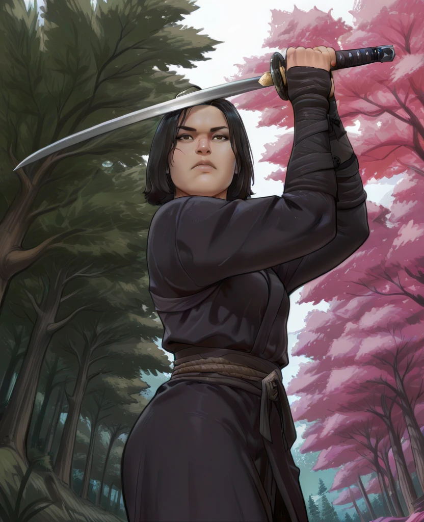 may hold sword backwards, or have reverse grip, which may mess with body posture