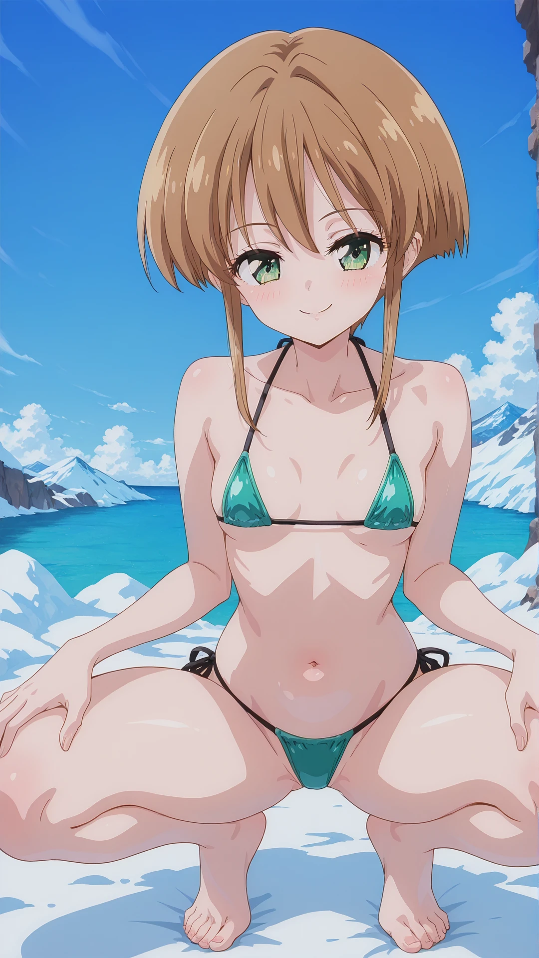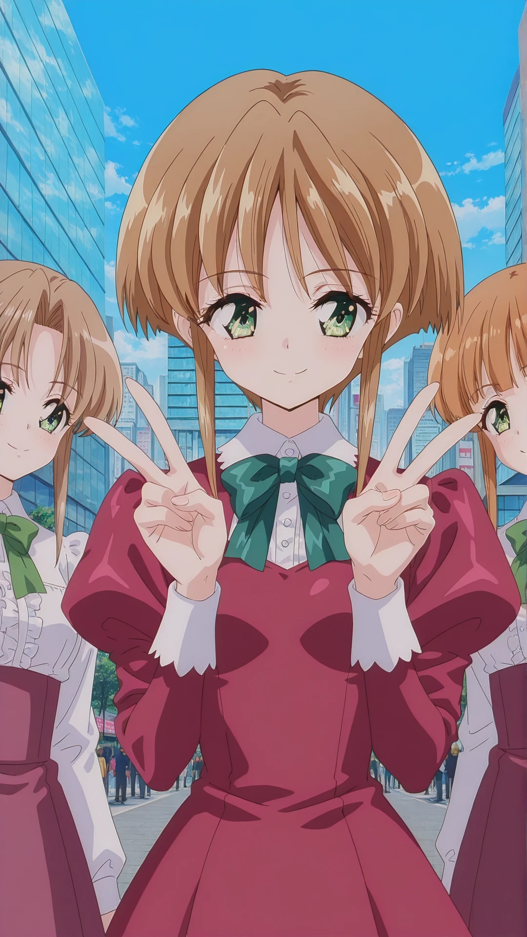 ai_doll, brown hair, green eyes, {twintails, short hair,long sidelocks,bangs, small breasts