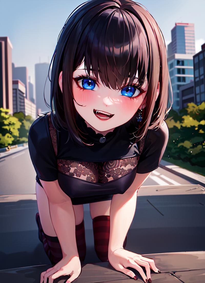 Useful tags: black lips,fangs,black hair,blue eyes,black dress,mavis dracula