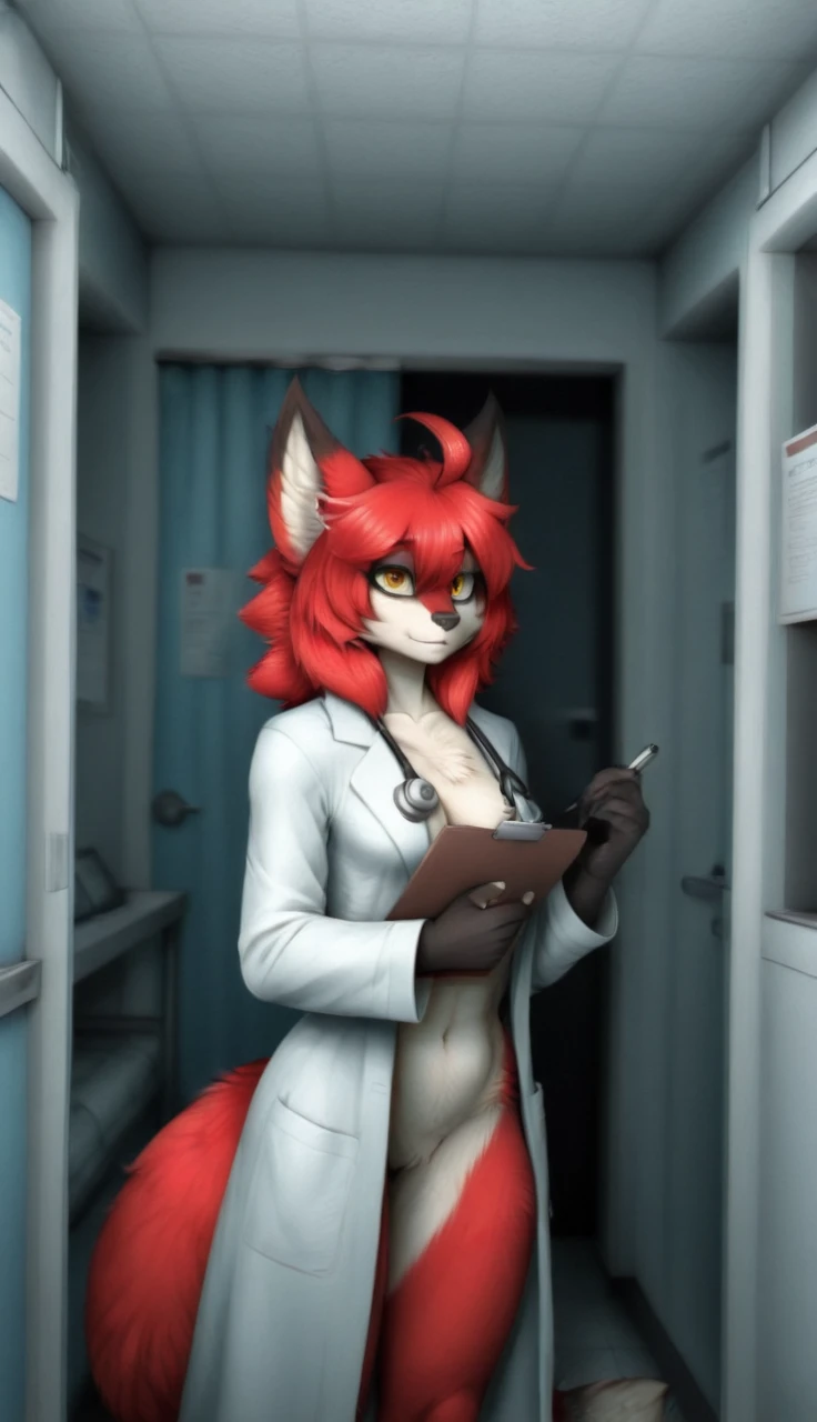 Suggested tags: Voltrixy_MAR_NoobAI, red fur, fox ears, medium hair, red hair, ahoge, yellow eyes, furry, source_furry, furry female