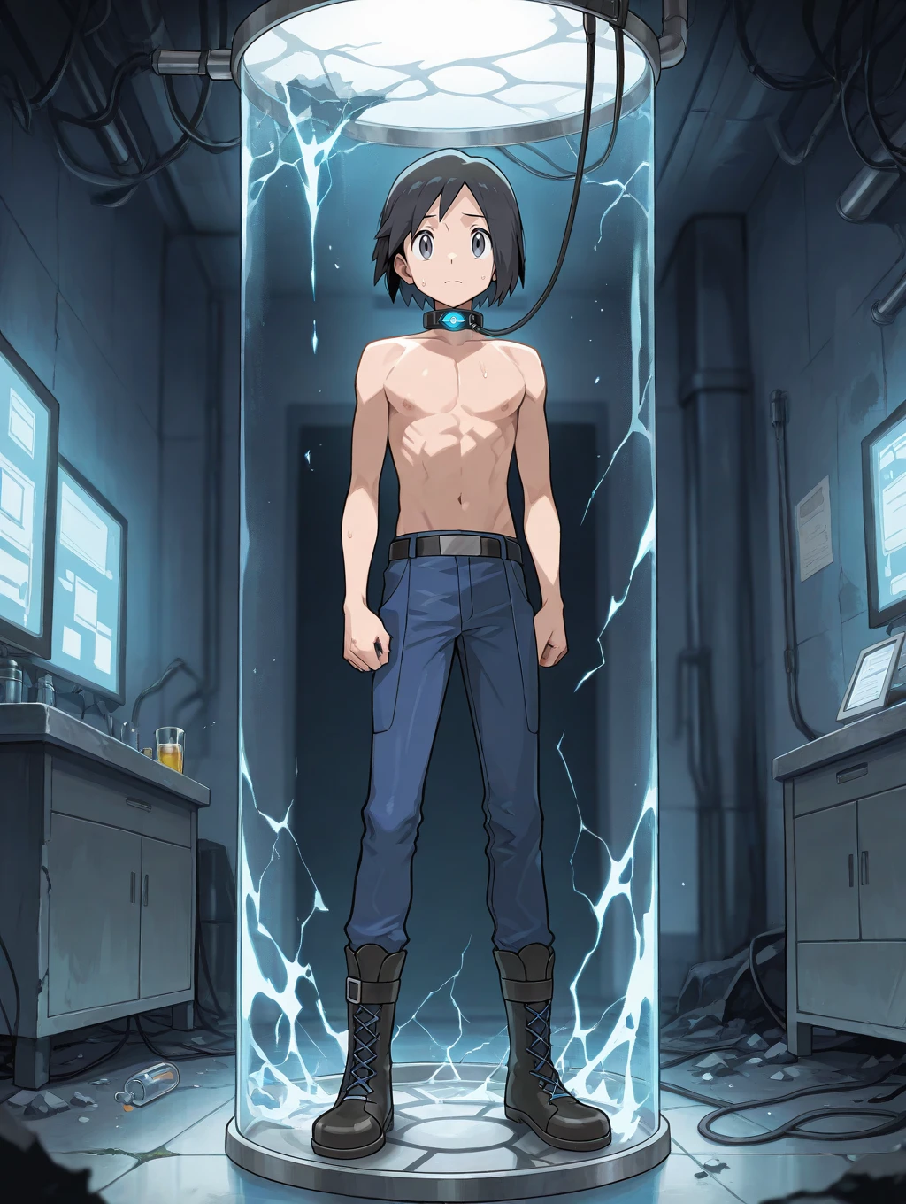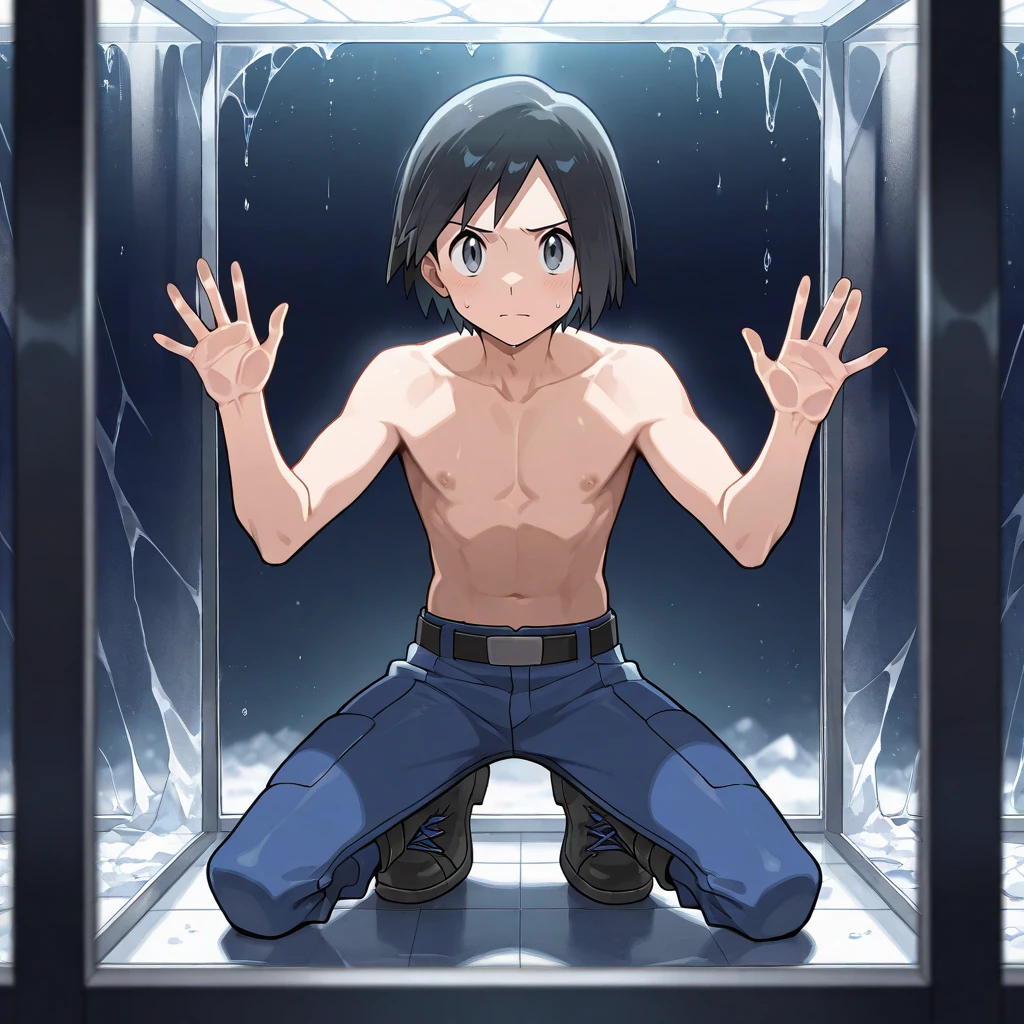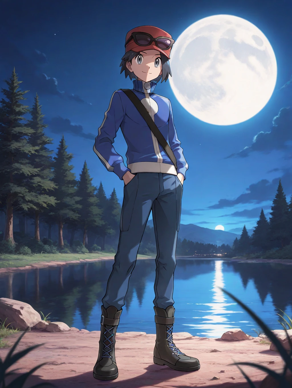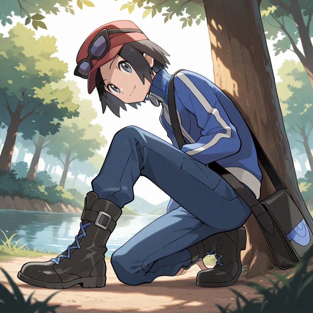 calem_\(pokemon\), black hair, grey eyes