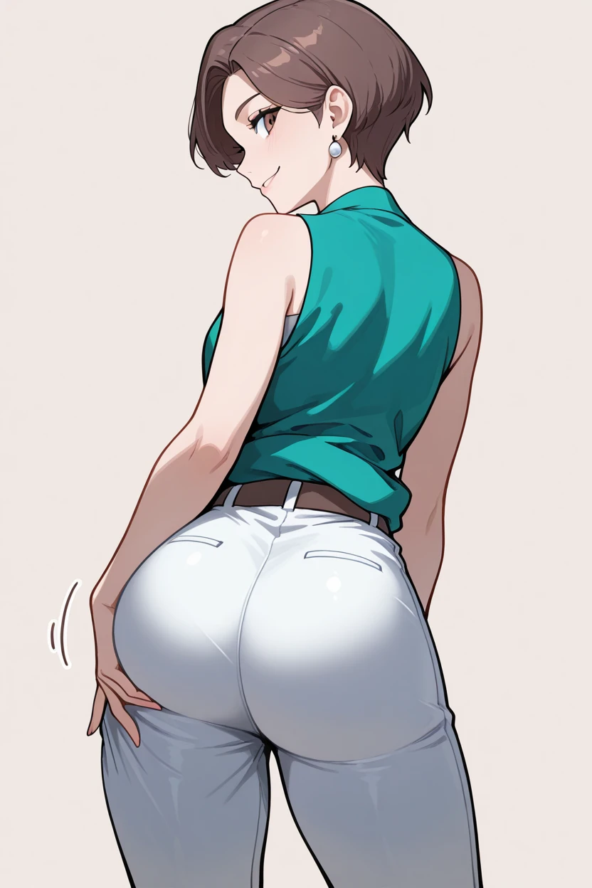 Key word is interviewergabby and for default outfit use: earrings, necklace, green vest, undershirt, white pants