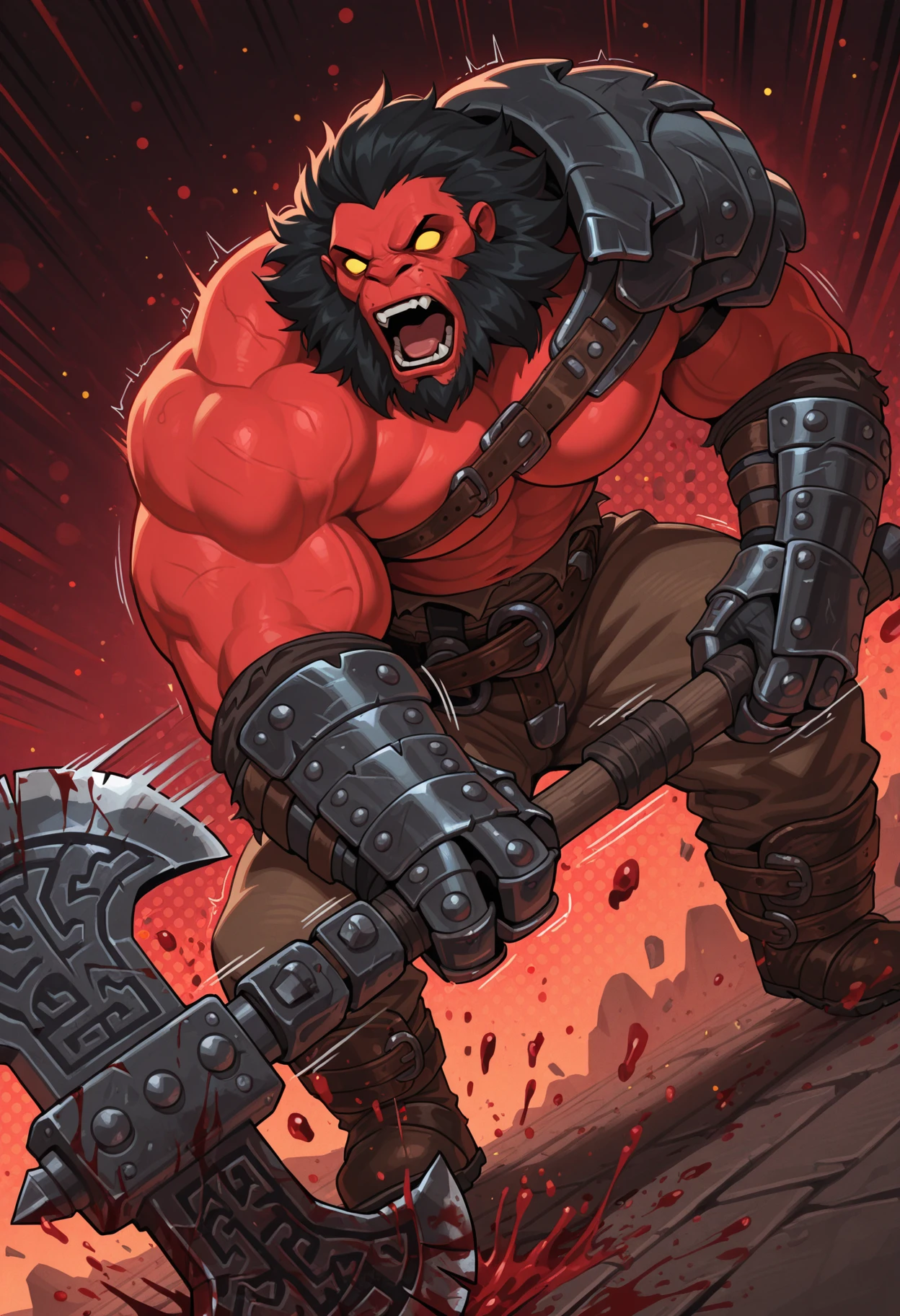 Trigger words : 4xe, red skin, 3 fingers, yellow eyes, no pupils, black hair, sideburns