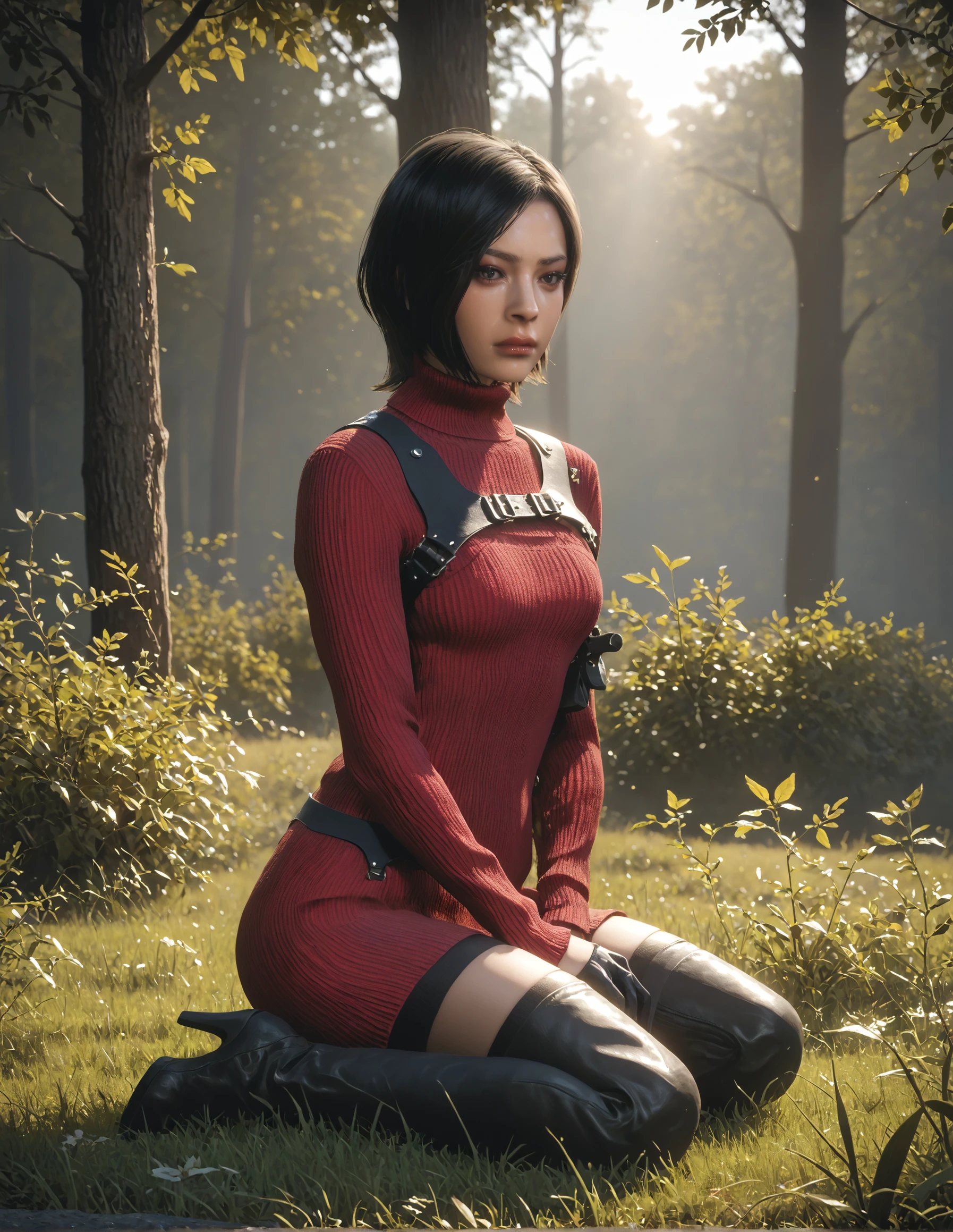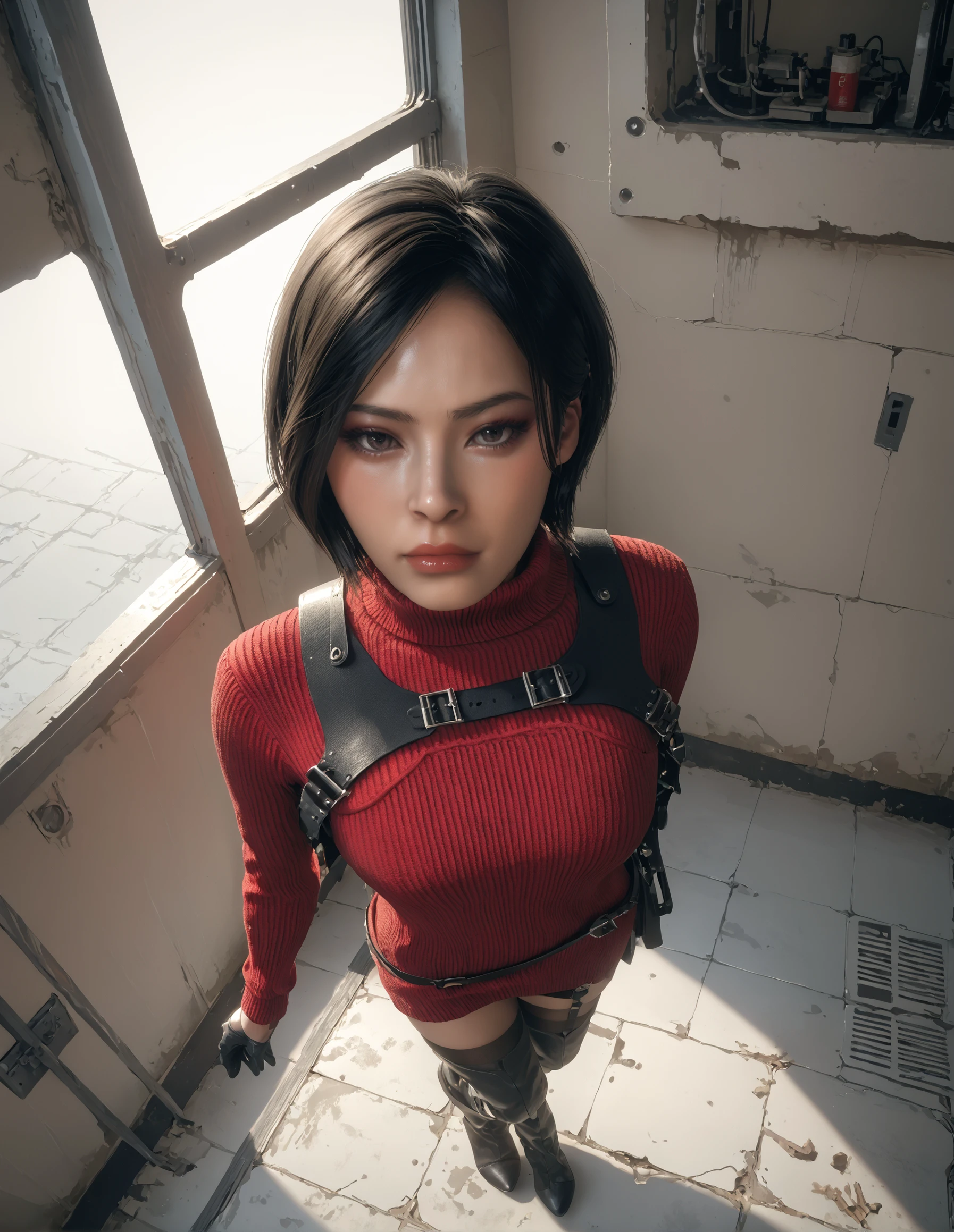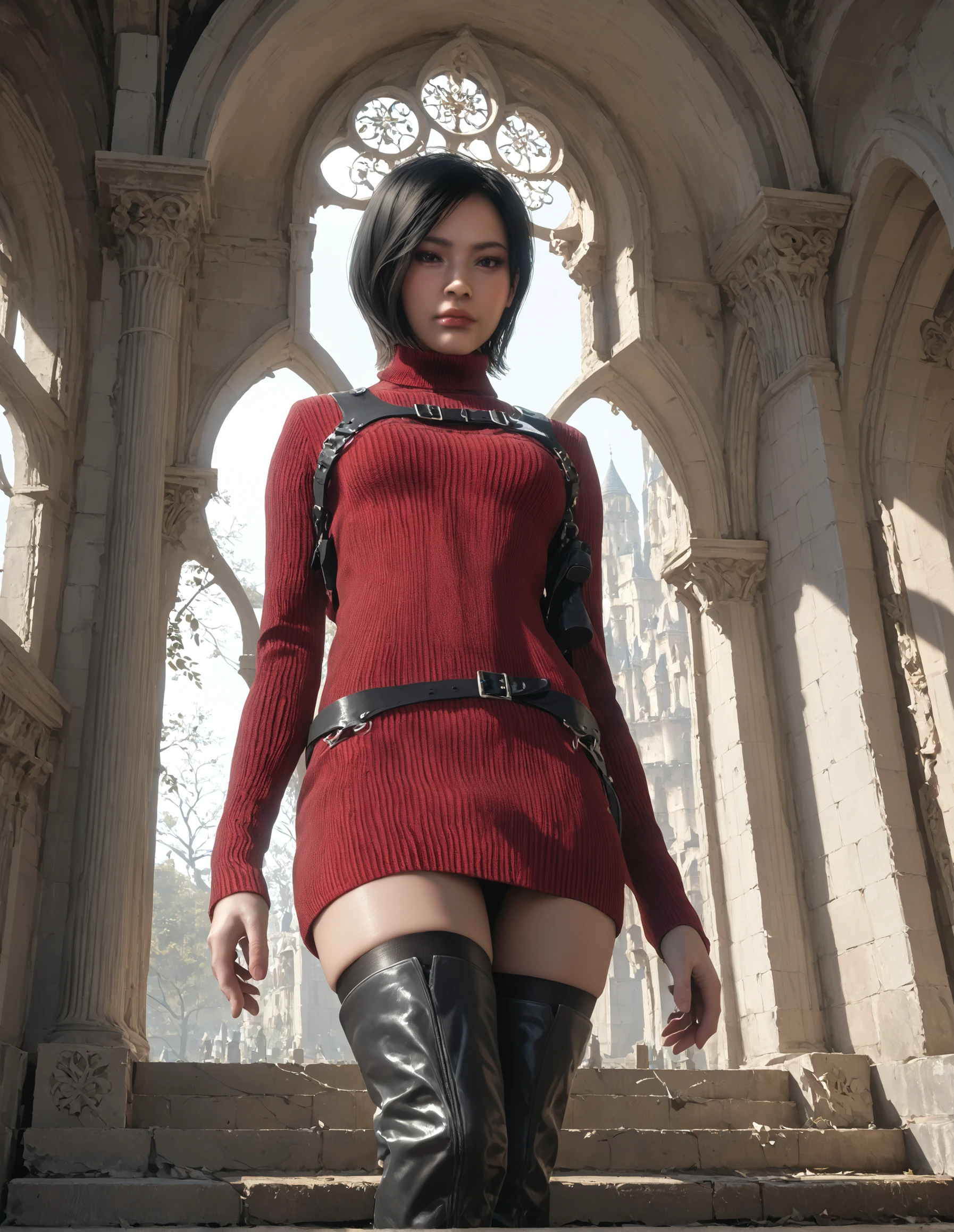 sweater,thigh boots,holster,black gloves