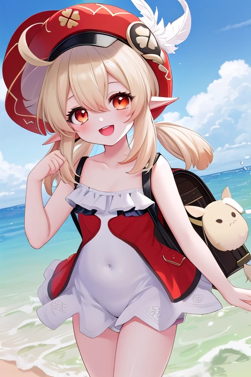 keli, and the recommended tags arebest quality, masterpiece, highres, solo, {keli:1.15}, bangs, klee_\(genshin_impact\), twintails, ahoge, pointy_ears, low_twintails, long_hair, hair_between_eyes, hat, smile, sidelocks, red_headwear, open_mouth, clover_print, hat_feather, cabbie_hat, light_brown_hair, bag, :d, backpack, hat_ornament, red_eyes, orange_eyes, blonde_hair.. - Recommended weight is 0.5-1.15.