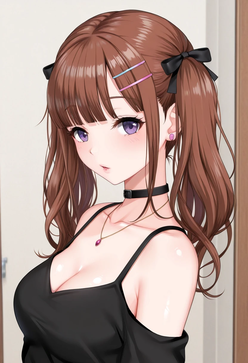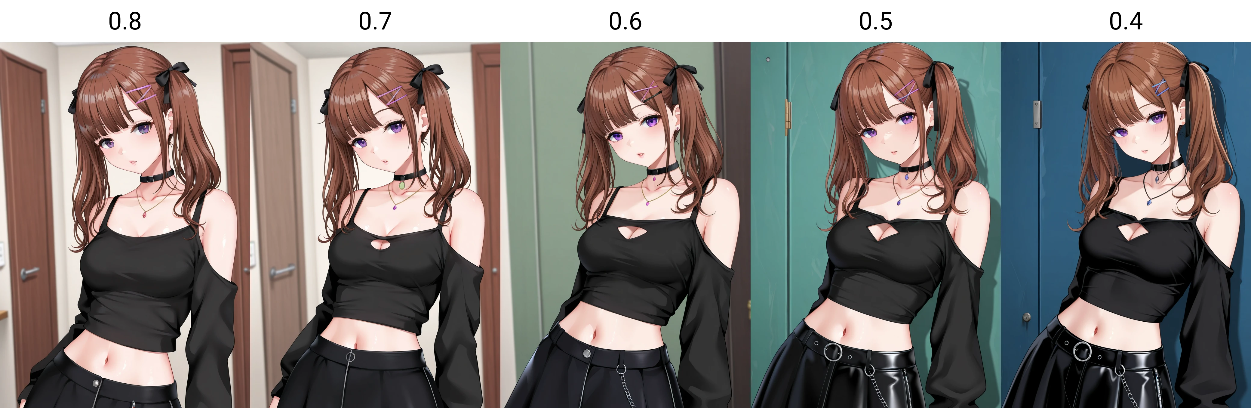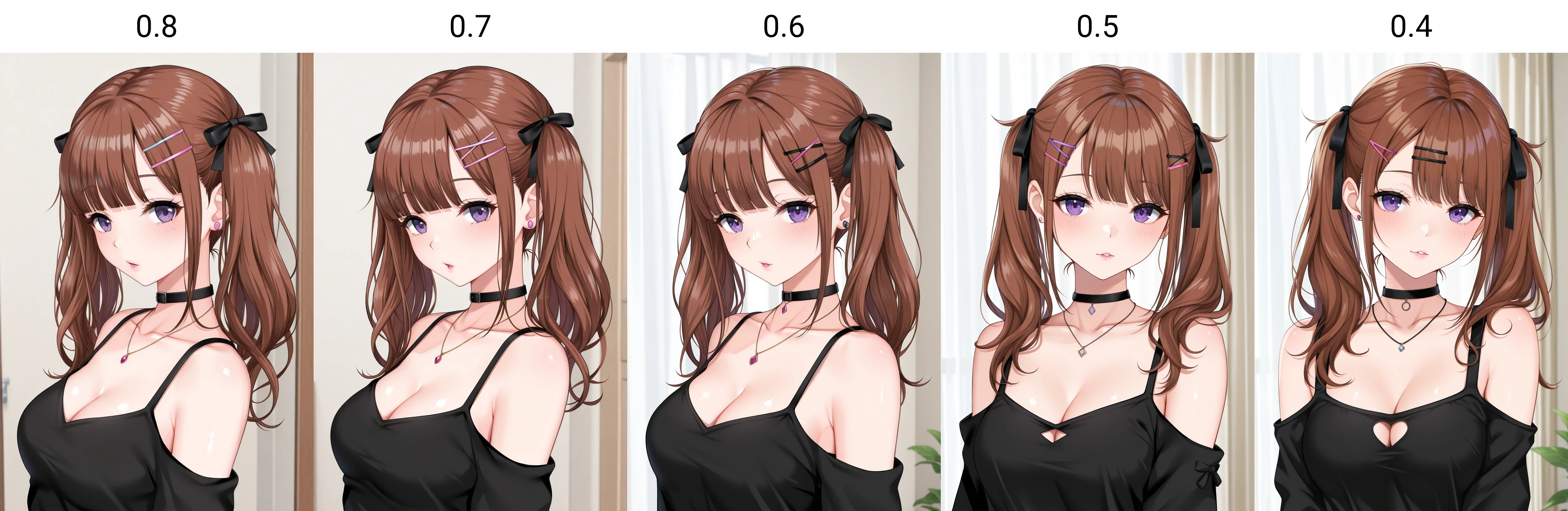 • Recommended tags: "brown hair, purple eyes, twintails, medium breasts"