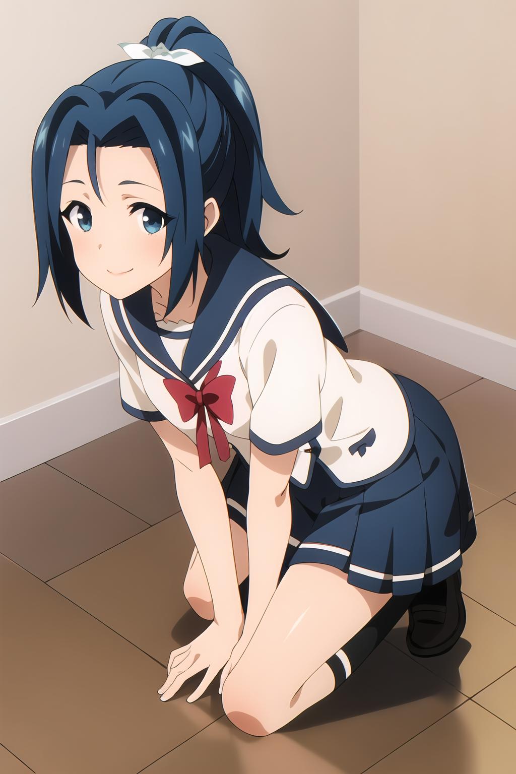 1girl, light blue, hina_hanetachi, ponytail, high ponytail