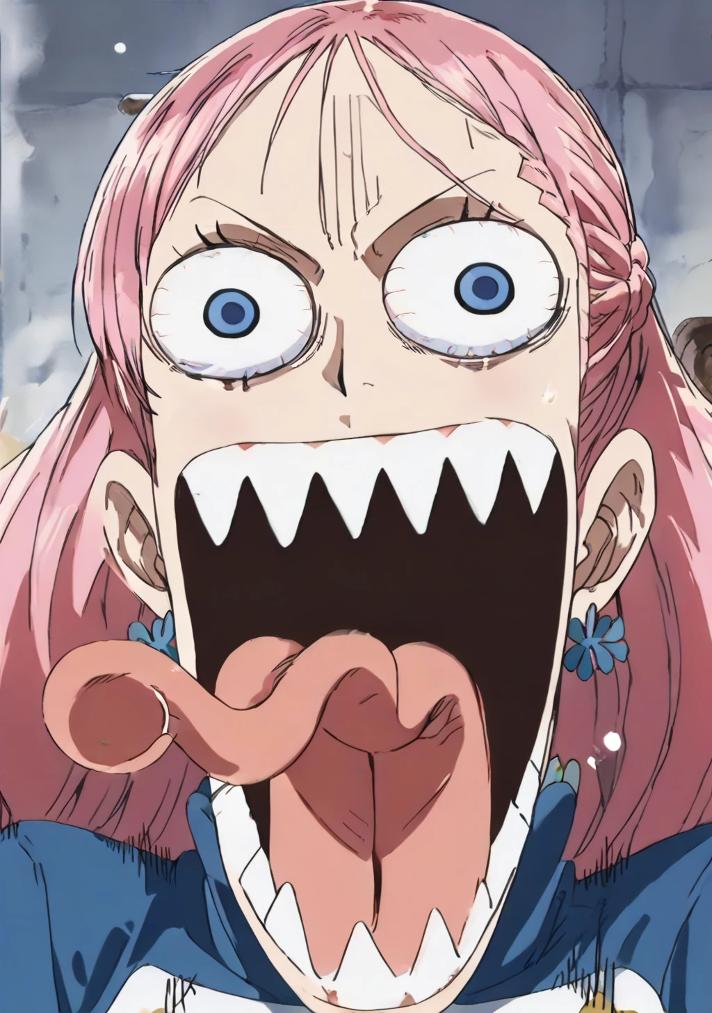 long hair,braid,forehead,pink hair,blue eyes