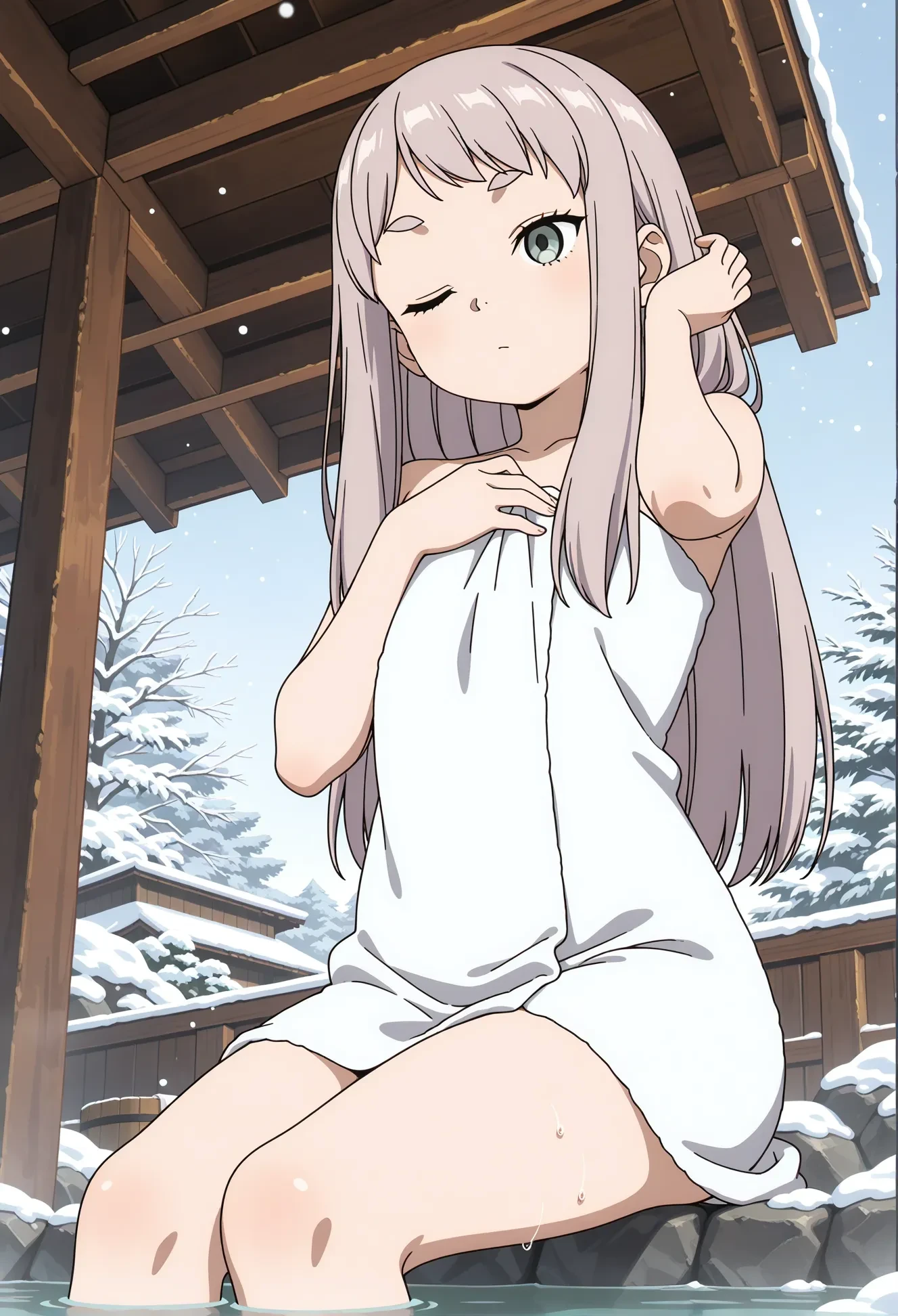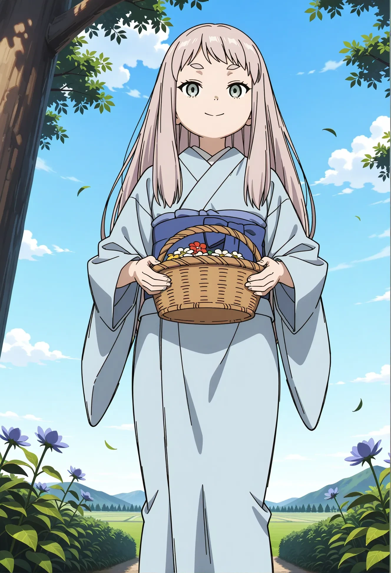 tsurugi_no_osa,sousou no frieren,long hair,grey hair,short bangs,thick eyebrows,sidelocks,grey eyes