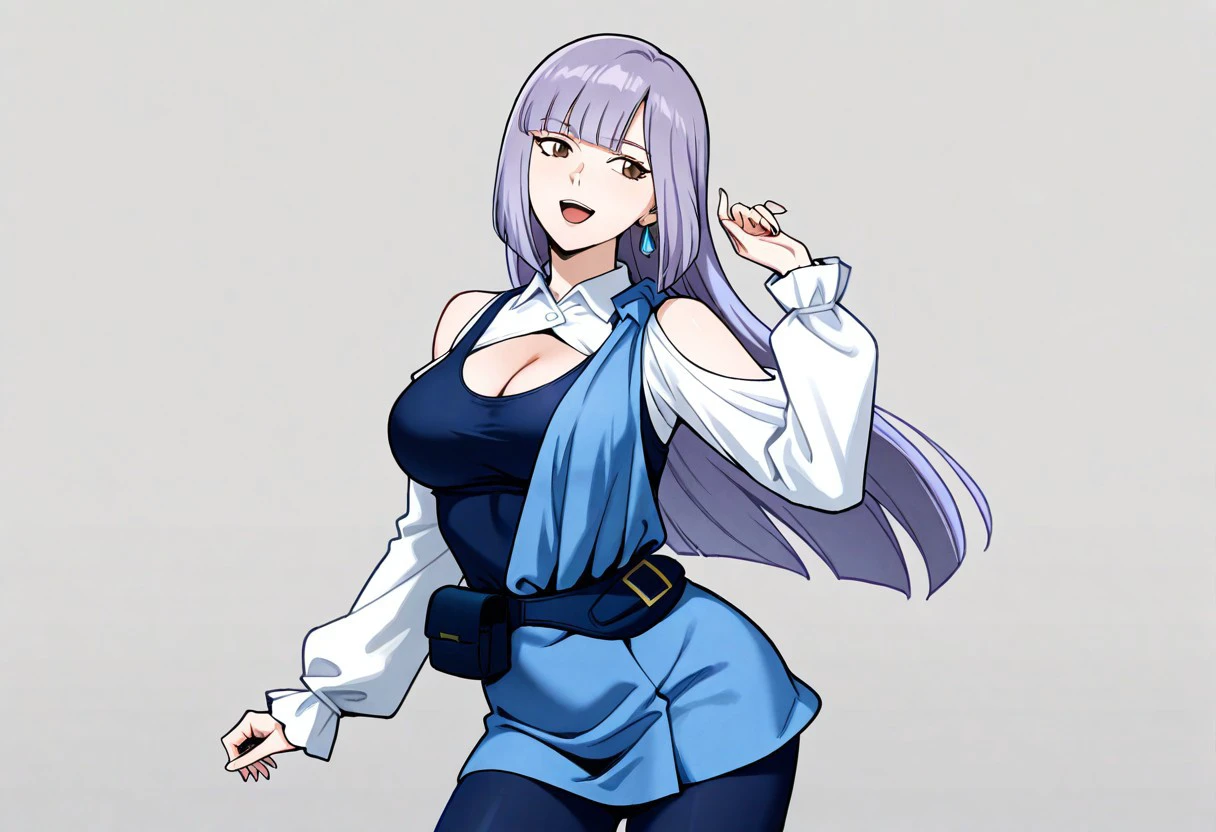 Trigger: 1girl, solo, RouxLouka, lavender hair, hime cut, long hair, brown eyes